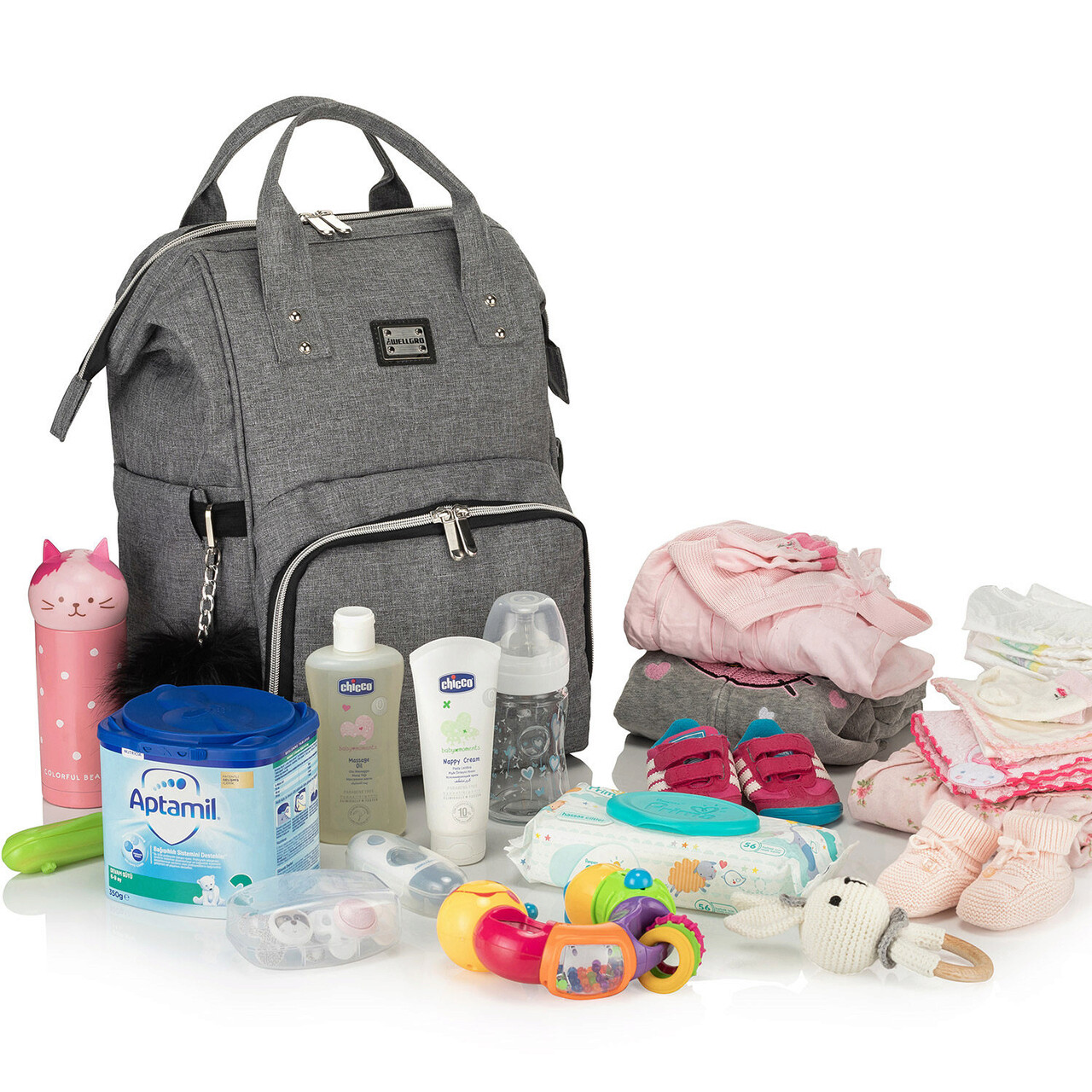 Ghiozdan multifunctional pentru mamici, Anne Bebek, Poliester, Gri