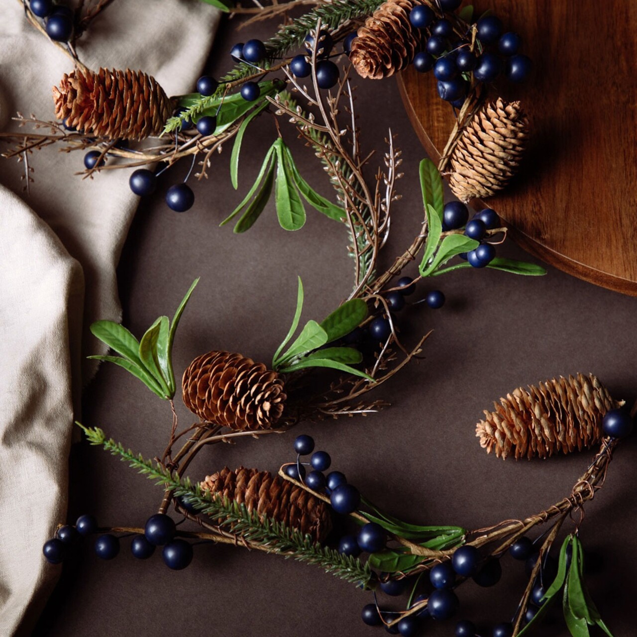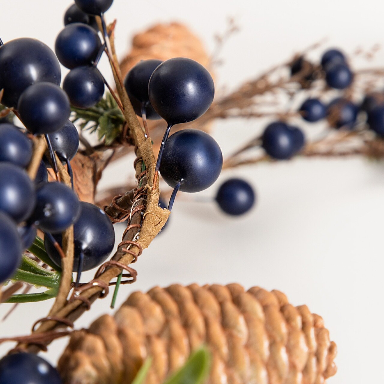 Pastrata in nuante naturale si decorata cu conuri de pin, paducel si crengute verzi, este ideala pentru a fi folosita ca decor pe masa, pervaz, rafturi sau usi. Datorita detaliilor fine, creeaza un ambient cald si festiv, perfect pentru sezonul rece.