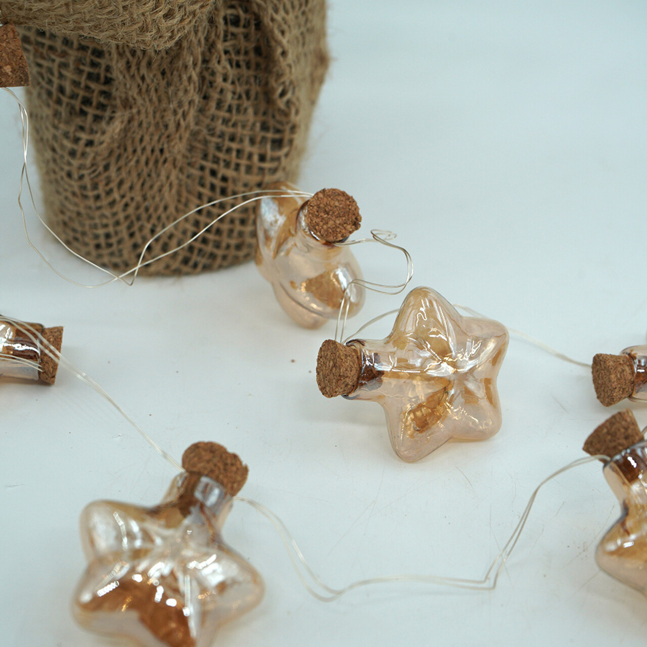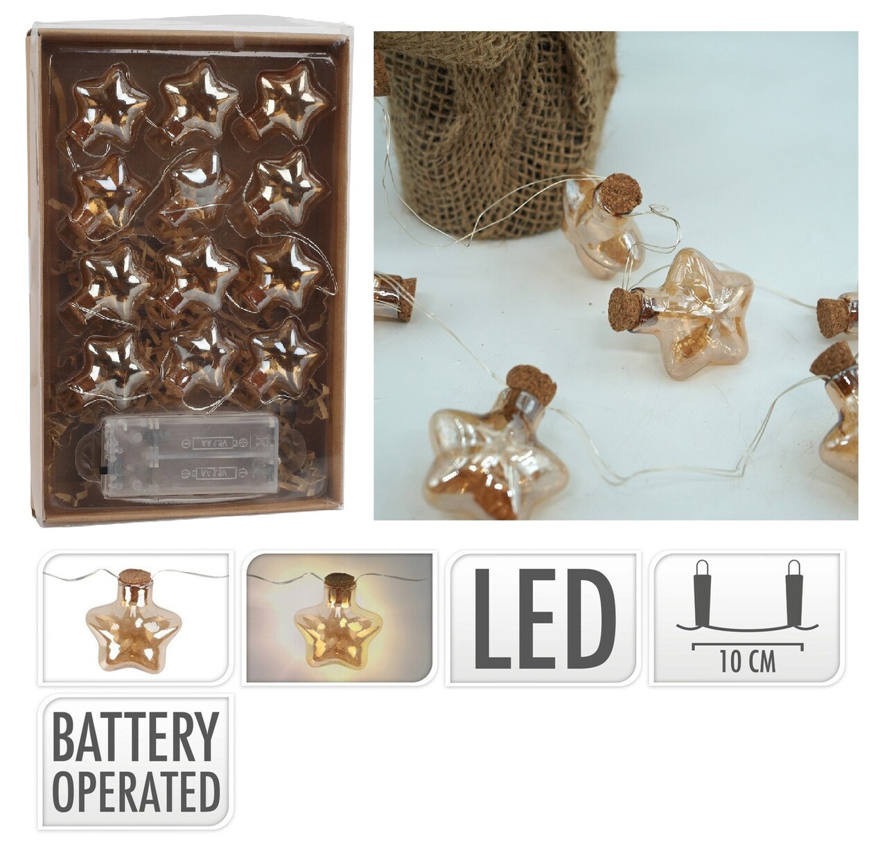 Ghirlanda luminoasa 12 LED-uri Star, 120 cm, sticla, chihlimbar