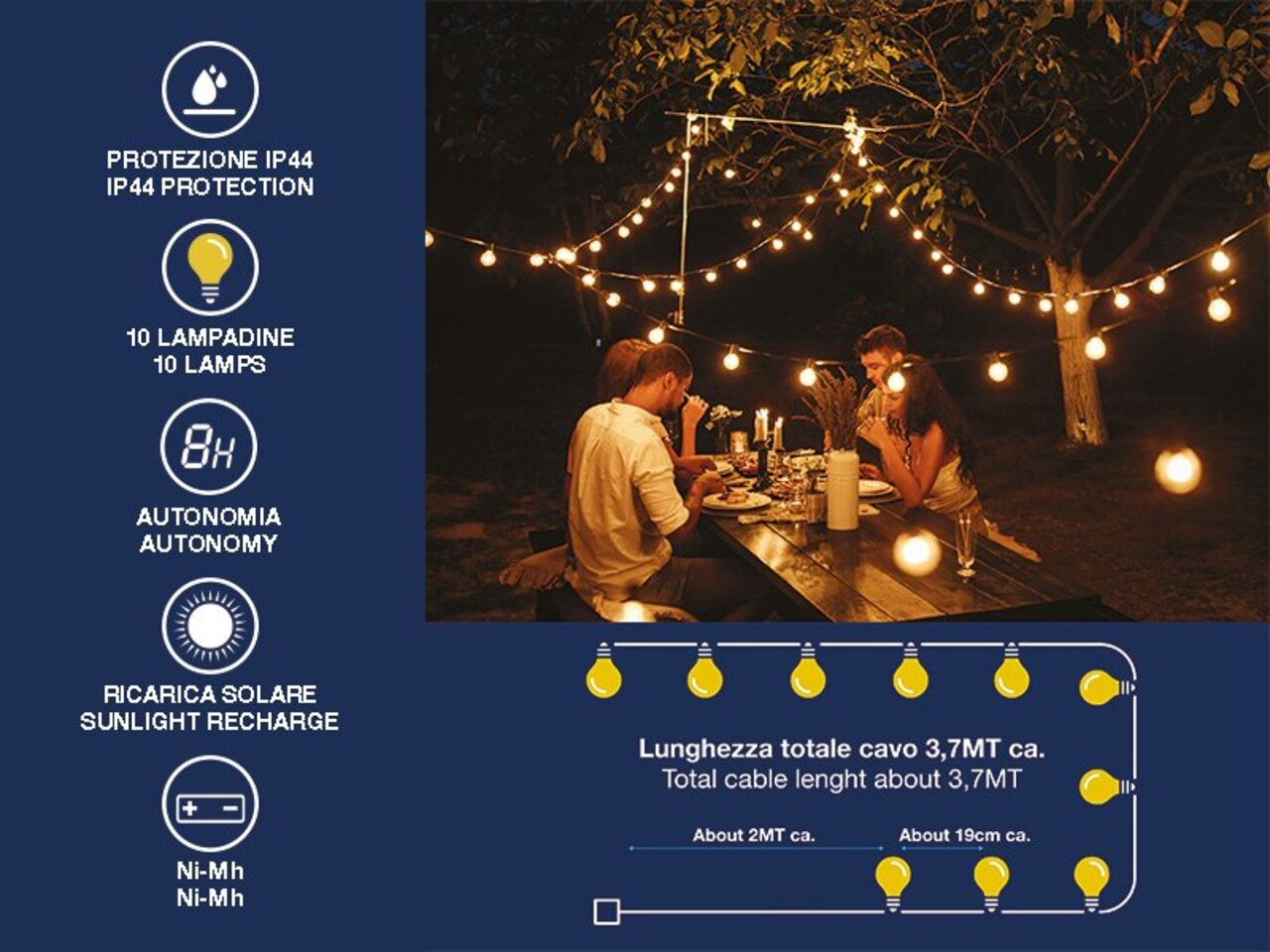 Ghirlanda solara decorativa pe franghie Beper, autonomie 10 ore, 384.5x6.5x23 cm, plastic/sticla, natur/transparent