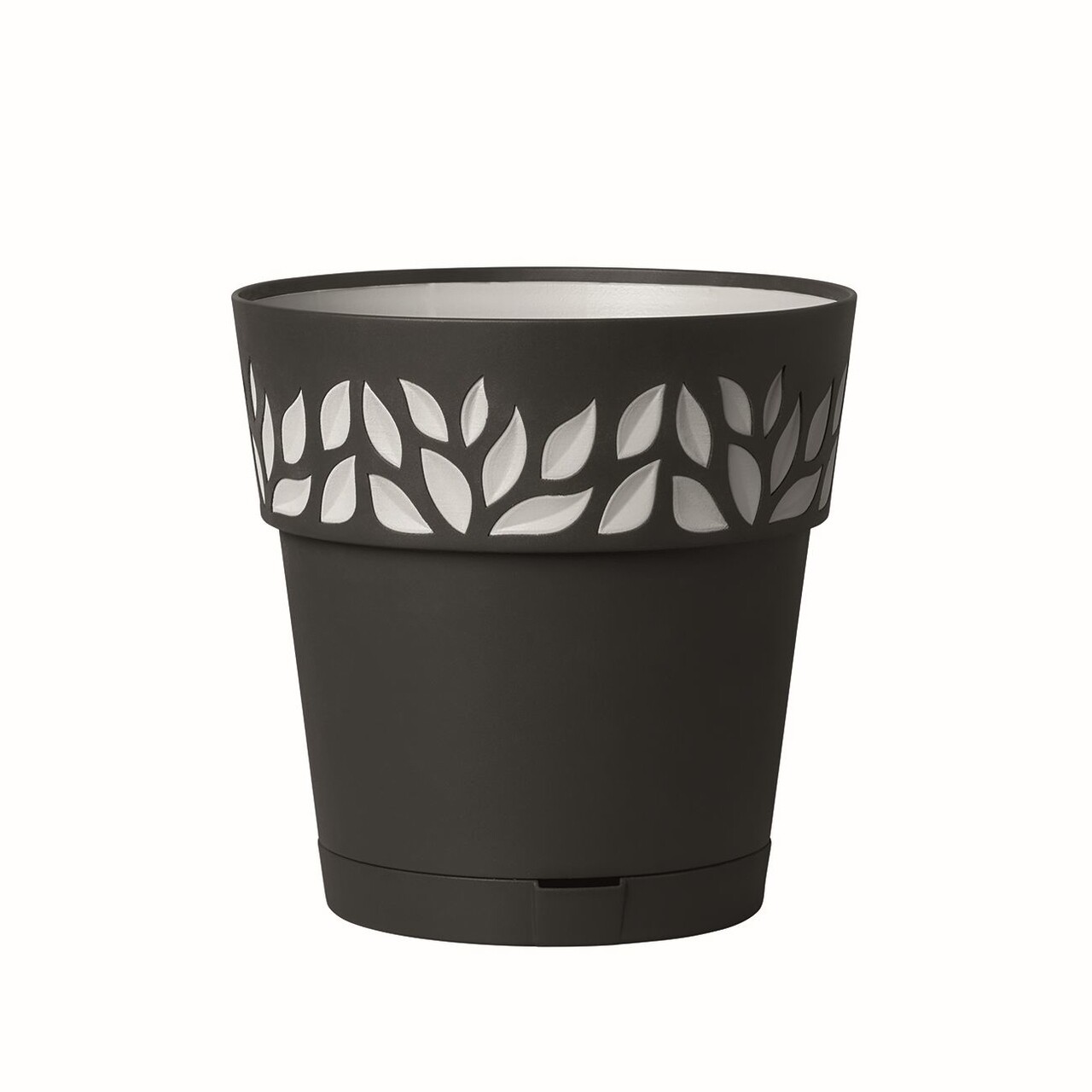 Ghiveci cu farfurie Cloe, 15 cm, plastic, grafit/gri