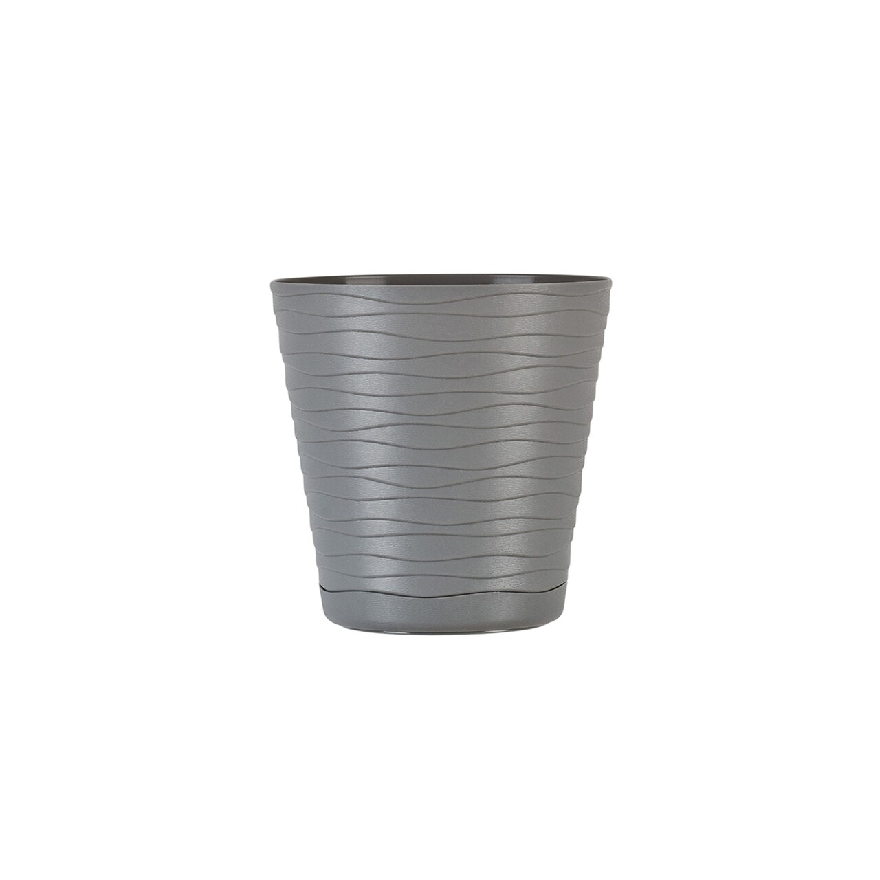 Ghiveci cu farfurie, Tedi, 17 cm, plastic, gri
