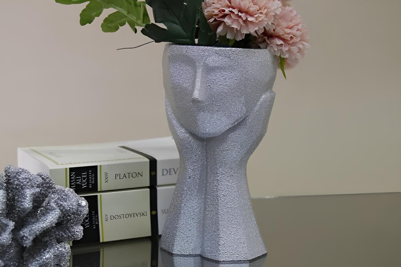 Ghiveci, CY0457, 11x20x11 cm, Poliester, Argintiu