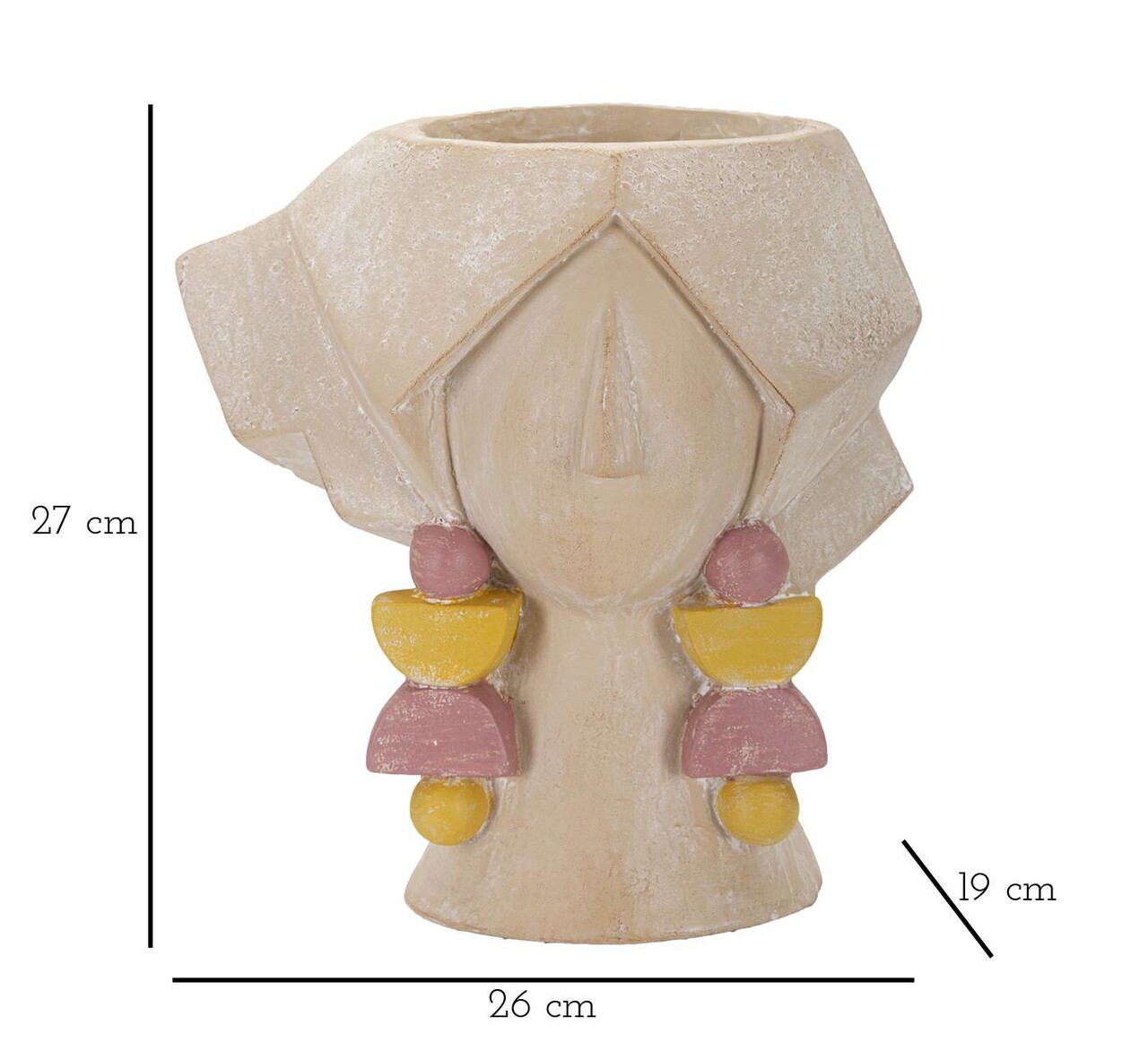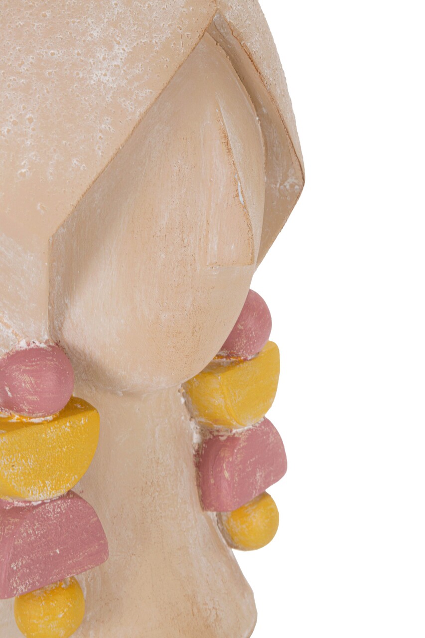 Vaza reprezentand un chip de femeie cu un design care aminteste de cubism, cu cercei eleganti si colorati.