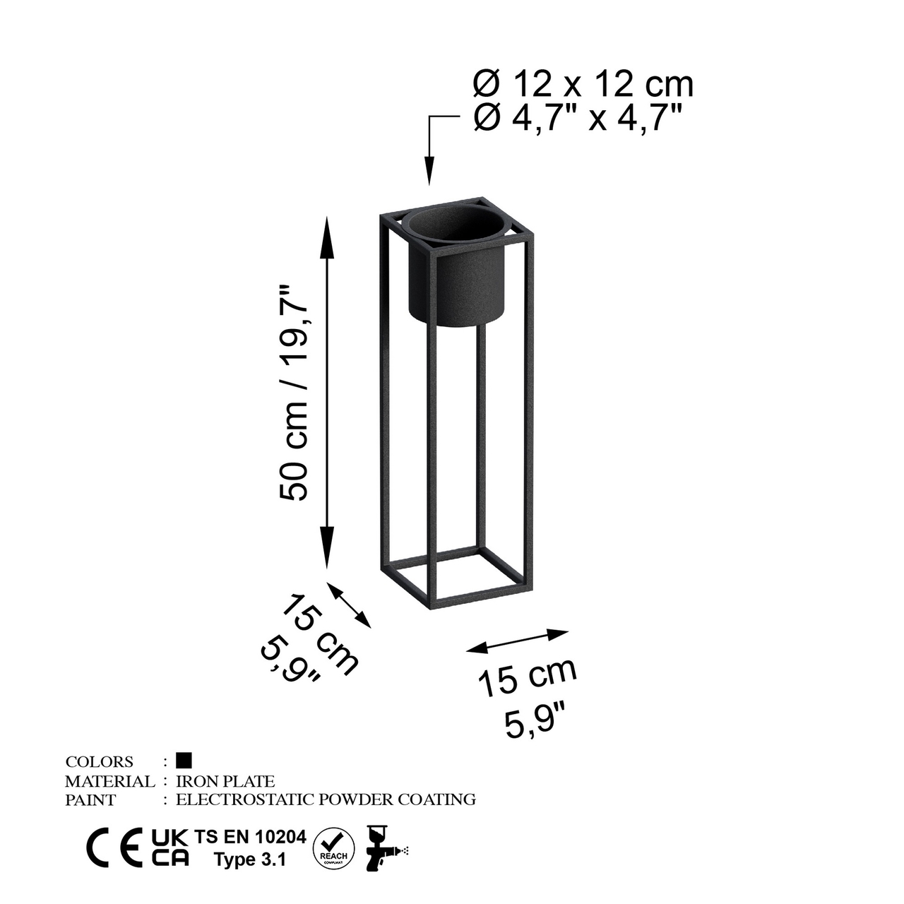 Ghiveci, GED-023, 15x50x15 cm, Metal, Negru