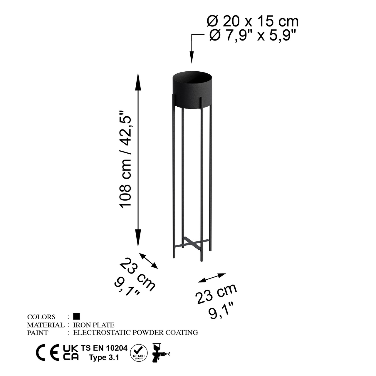 Ghiveci, GED-024, 23x108x23 cm, Metal, Negru