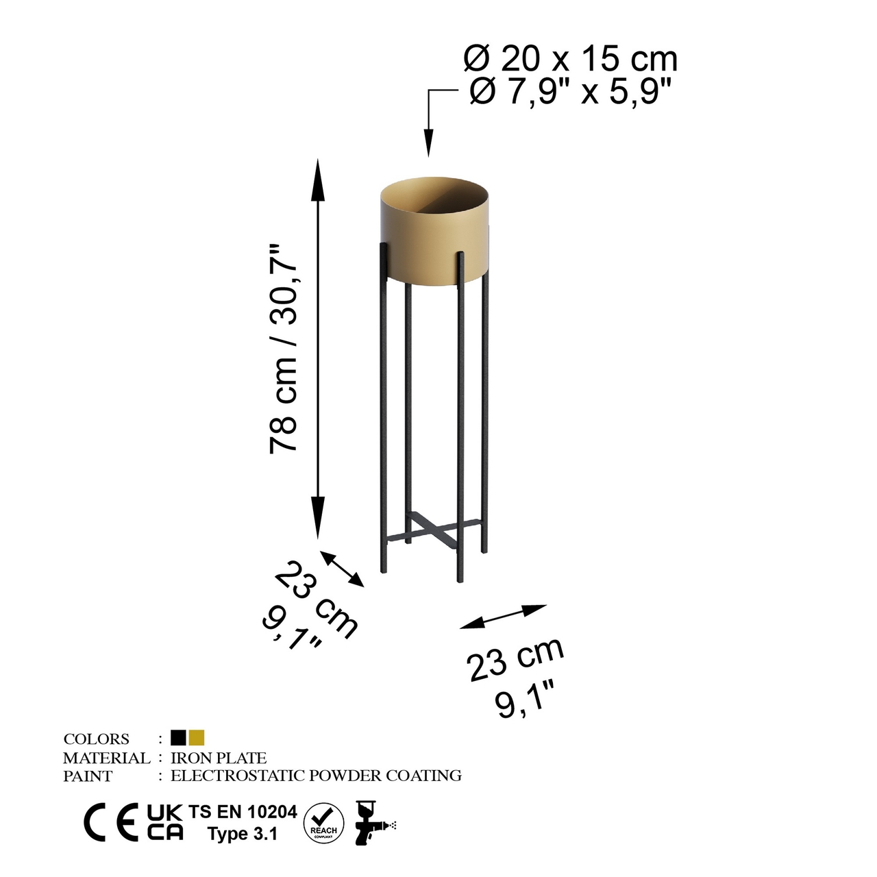 Ghiveci, GED-025-A, 23x78x23 cm, Metal, Negru