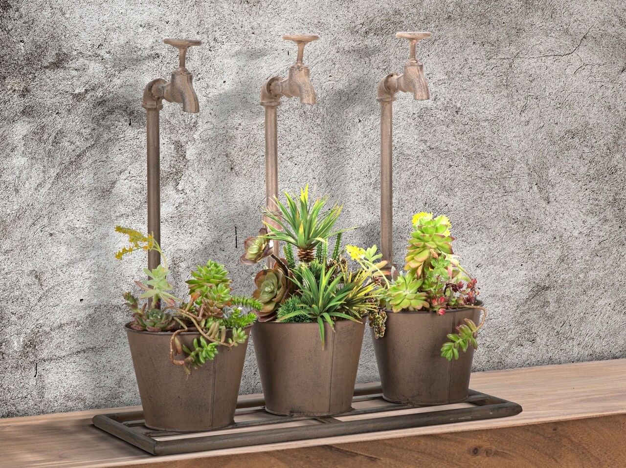 Ghiveci Industry Triple, Mauro Ferretti, 49 x 19 x 48 cm, fier, maro