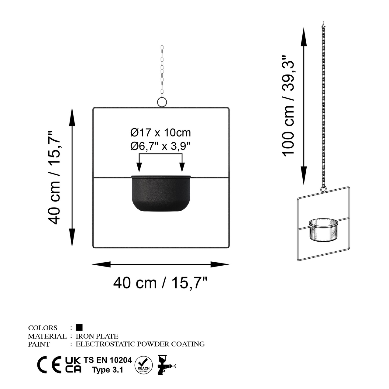 Ghiveci, Pandantif, 40x40x17 cm, Metal, Negru