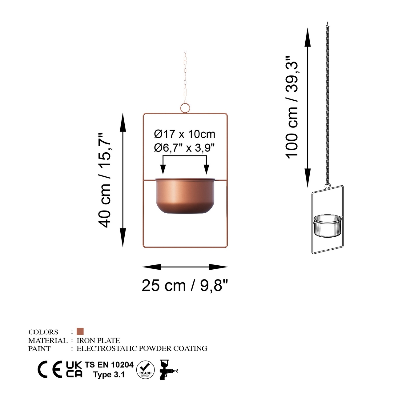 Ghiveci, Parapet, 25x40x17 cm, Metal, Cupru