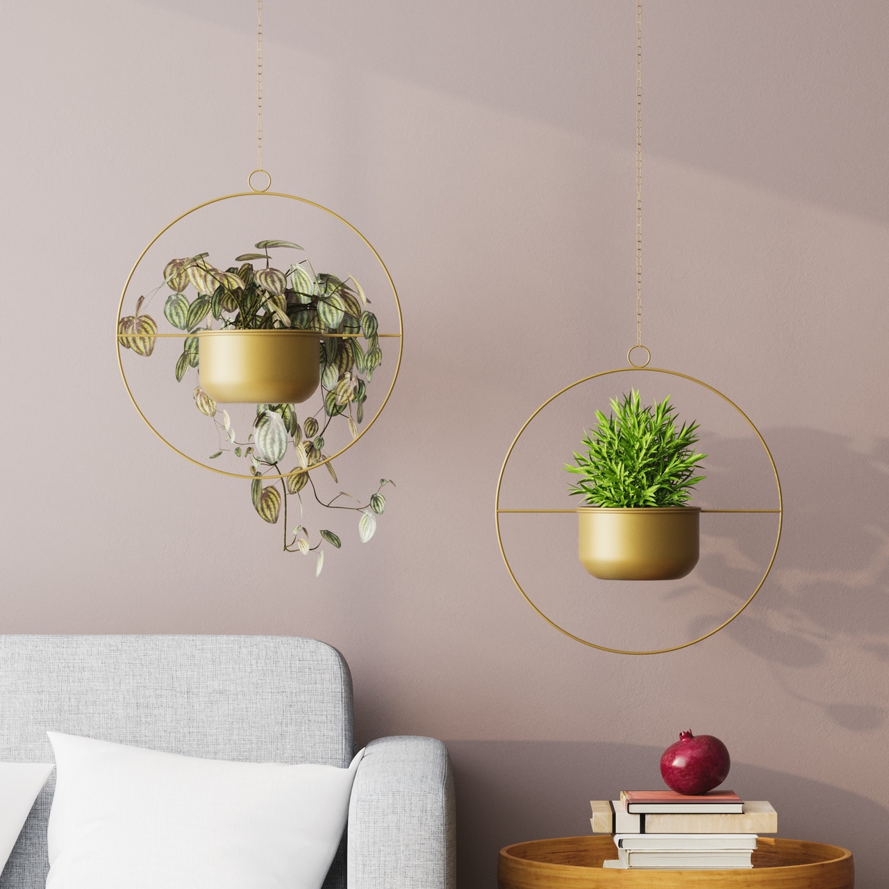 Ghiveci, Payanda, 40x40x17 cm, Metal, Auriu