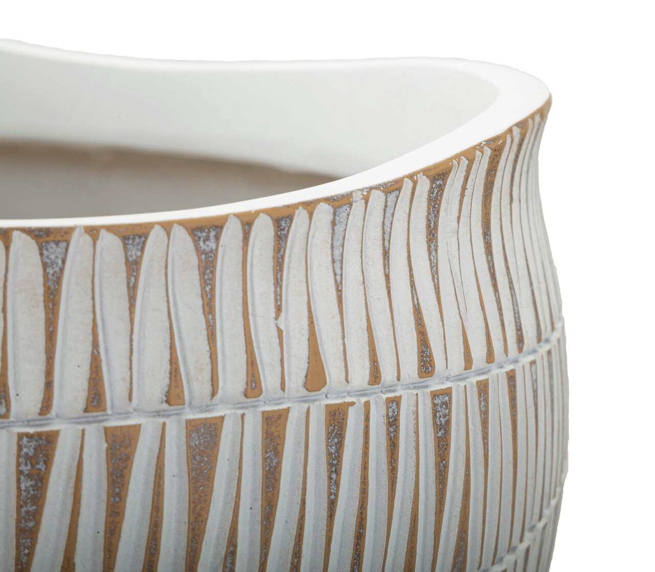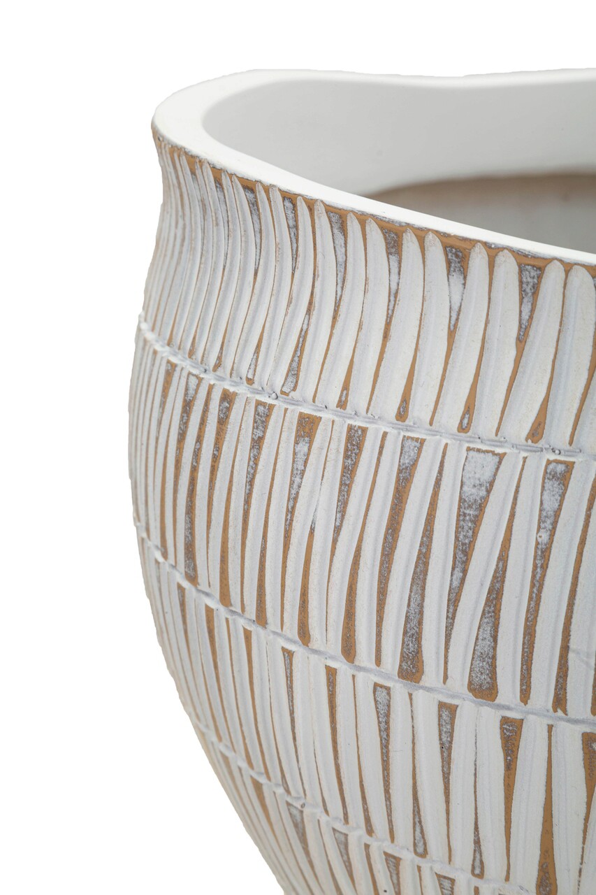 Ghiveci din polirasina decorat elegant cu sculpturi geometrice si liniare.