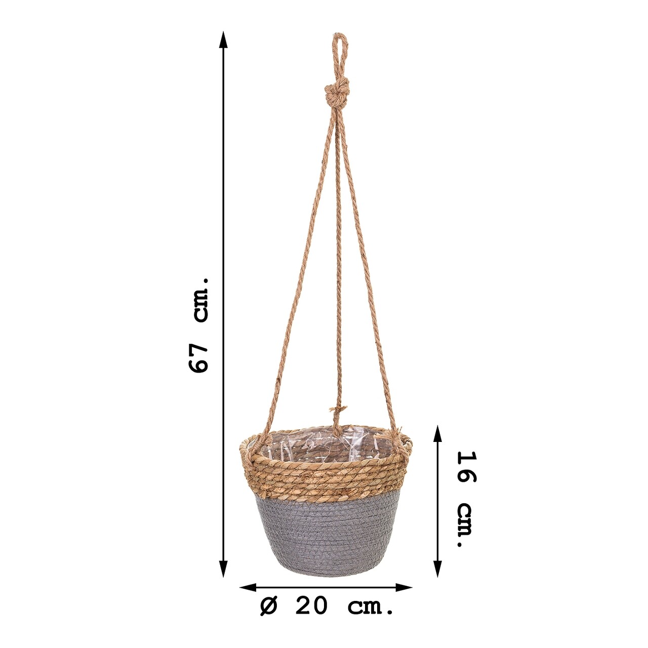 Ghiveci suspendabil, Creaciones Meng, 20x16 cm, stuf, natural/gri