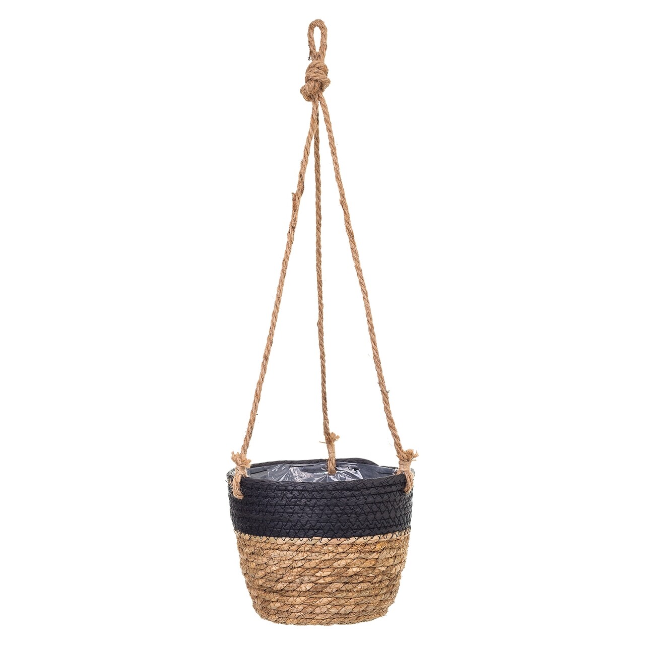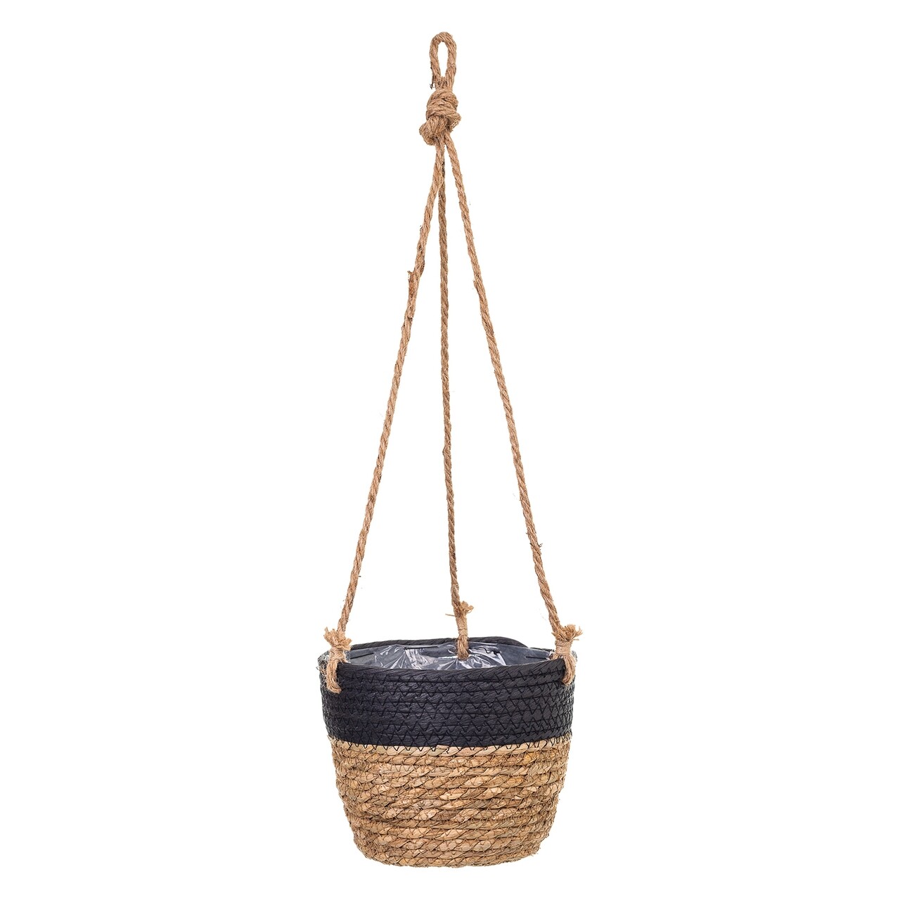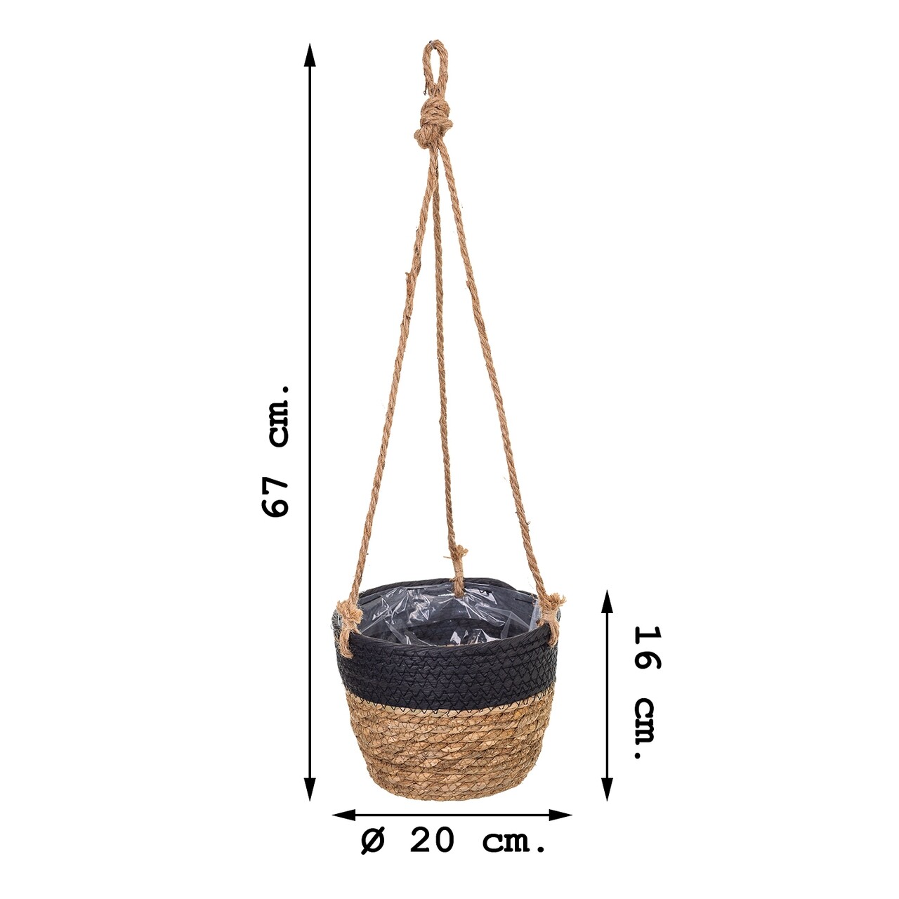 Ghiveci suspendabil, Creaciones Meng, 20x16 cm, stuf, natural/negru