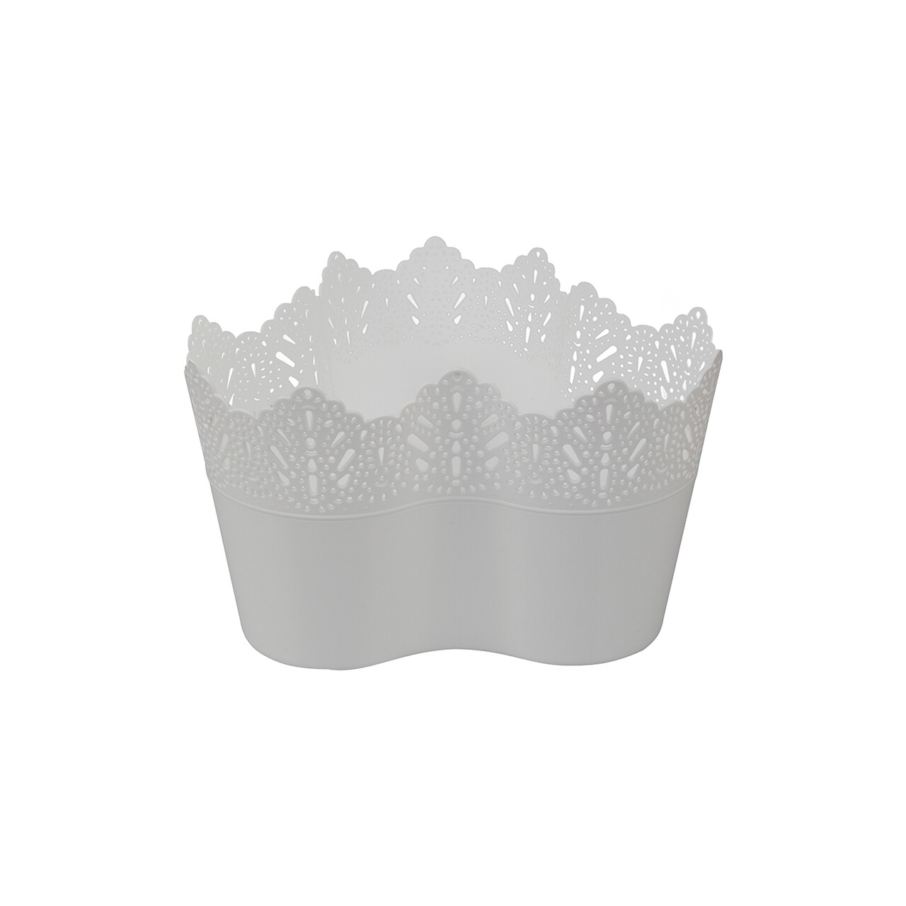 Ghiveci triplu Koronka, 15x25 cm, plastic, alb