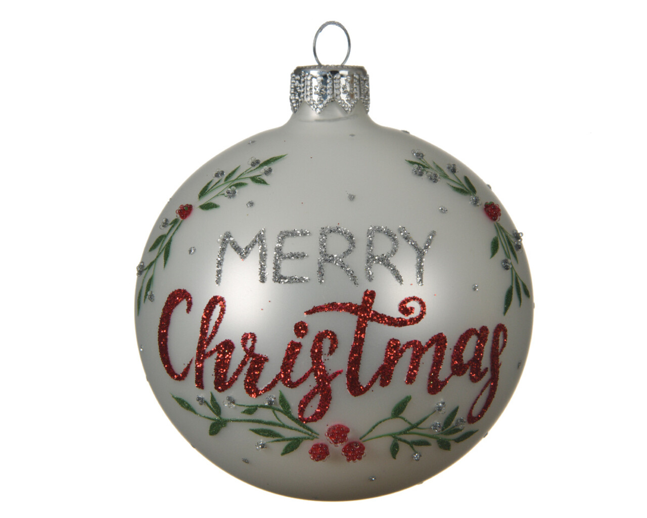 Glob Merry Christmas, Decoris, Ø8 cm, sticla, alb