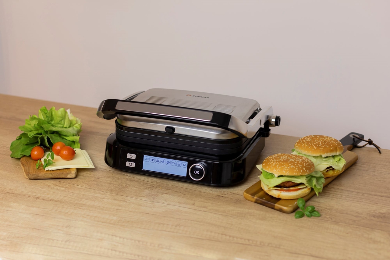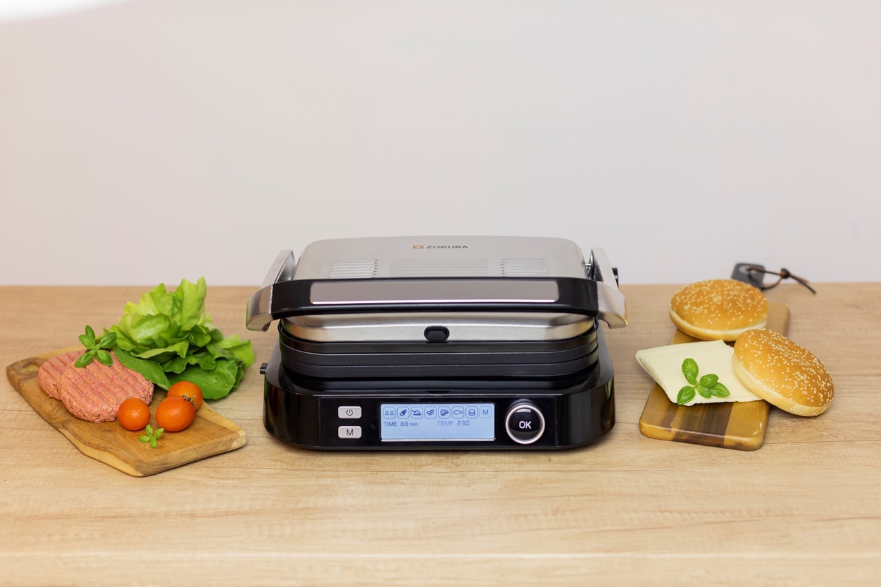 Gratar electricCu afisaj digital si 7 programe prestabilite, MarcaZokura, Putere1800–2100 W.