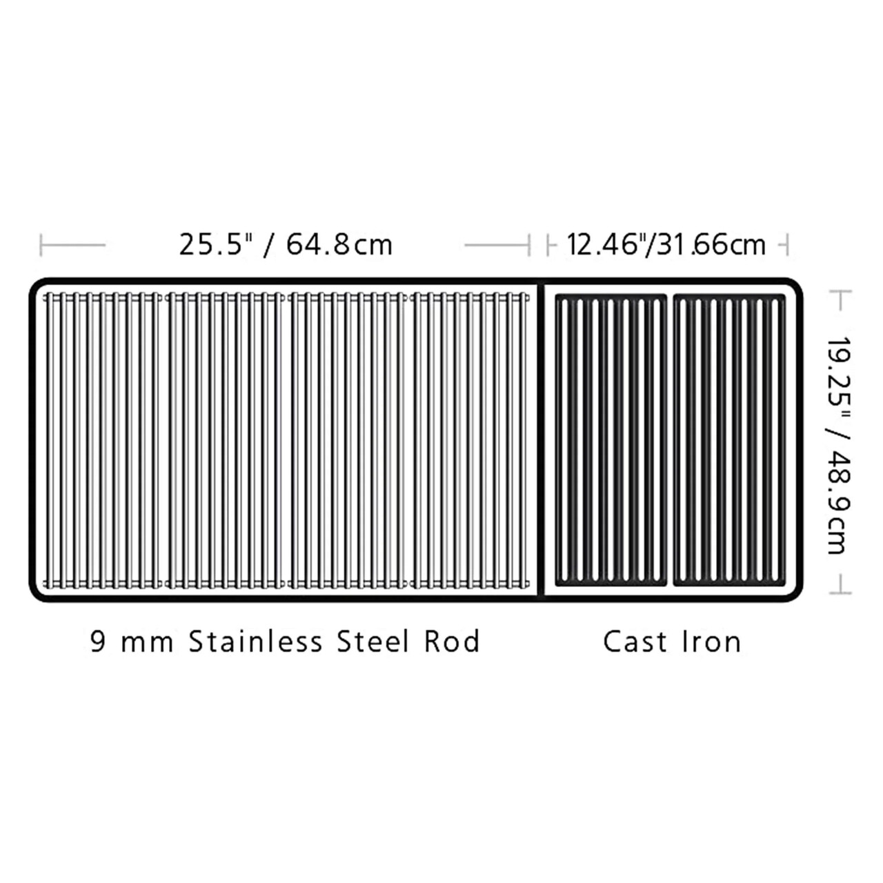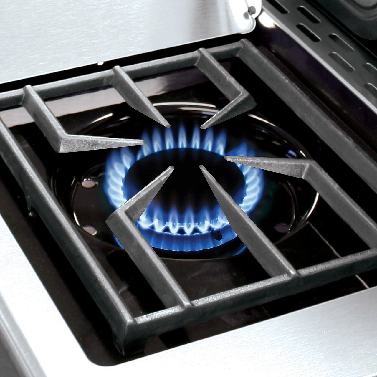 Gratarul dispune de doua cuptoare complet independente, cu un spatiu de gatit generos. De asemenea, include doua rafturi din portelan, cu incalzire si 4 gratare de gatit din otel inoxidabil de 9 mm. Cele doua gratare de gatit reversibile din otel inoxidabil, sistemul de gatit Flav-R-Wave si cele 6 arzatoare Dual-Tube contribuie pentru un produs complet functional. De asemenea, rafturile laterale din otel inoxidabil si carcasa inchisa cu lampi pentru iluminare contribuie estetic, dar mai ales practic pentru un produs pe care trebuie sa il aveti in gradina voastra.
