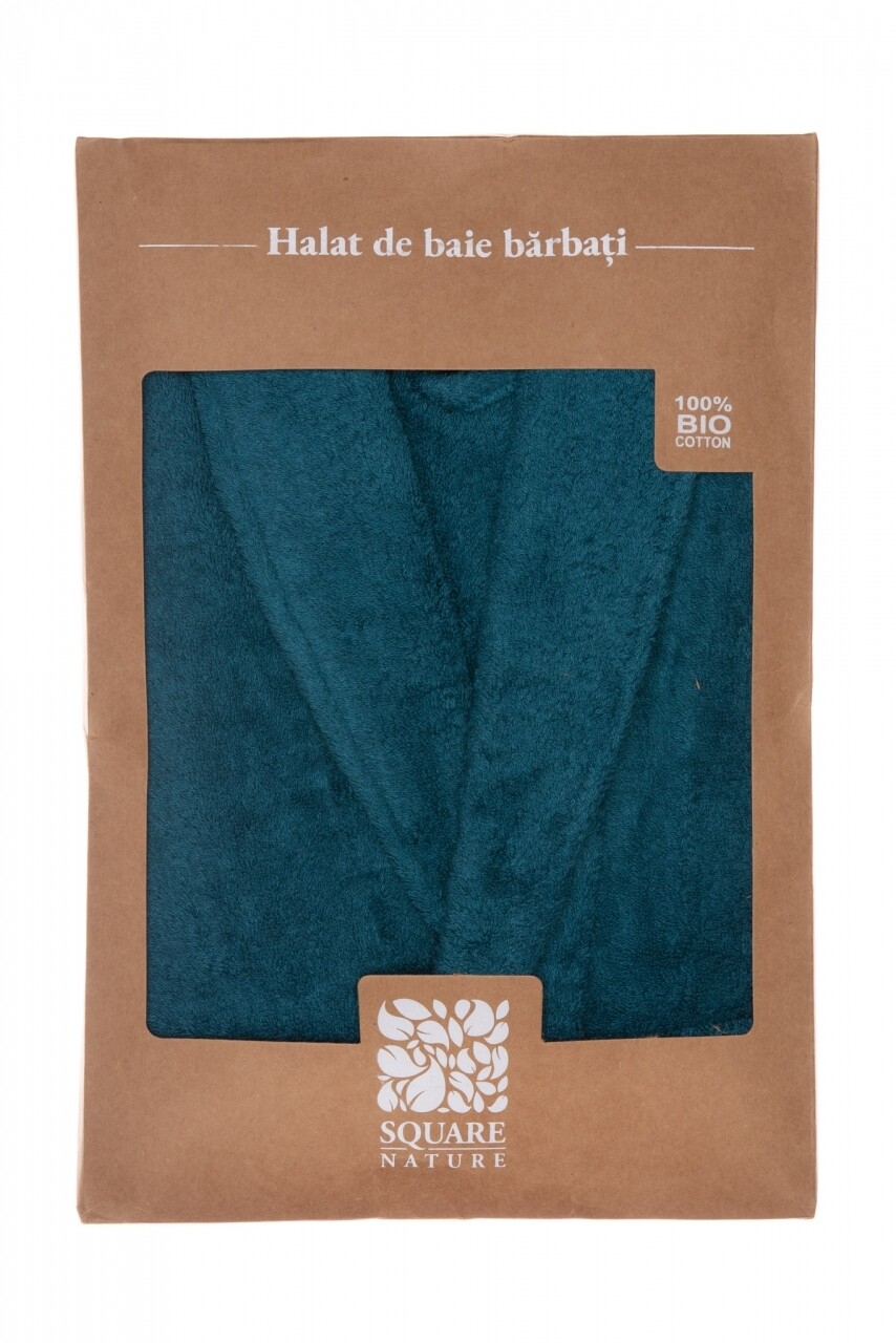 Halat de baie barbatesc, 100% bumbac organic, Petrol