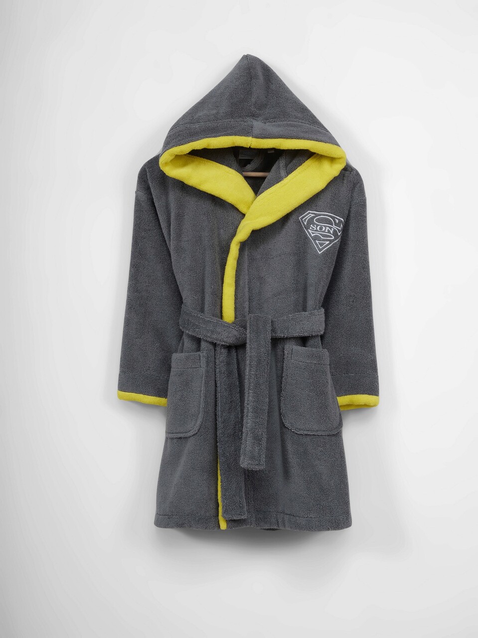 Halat de baie pentru copii, Hobby, Boy, Bumbac, Gri / Galben