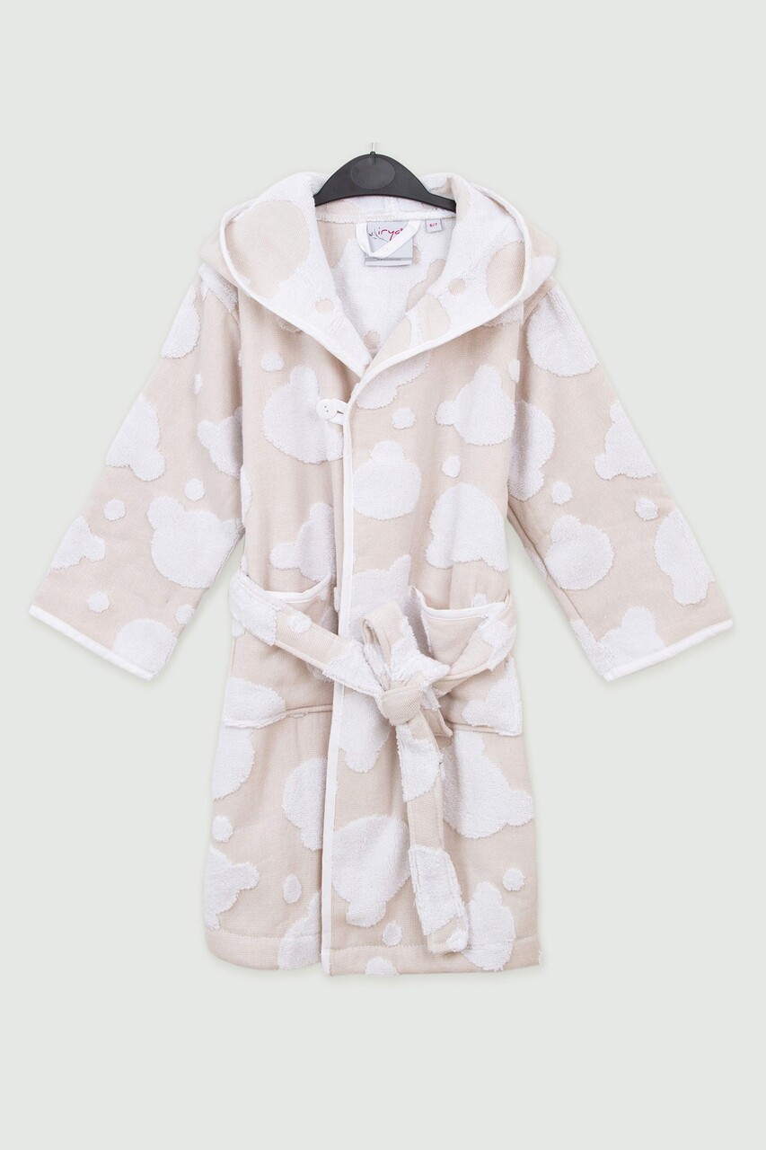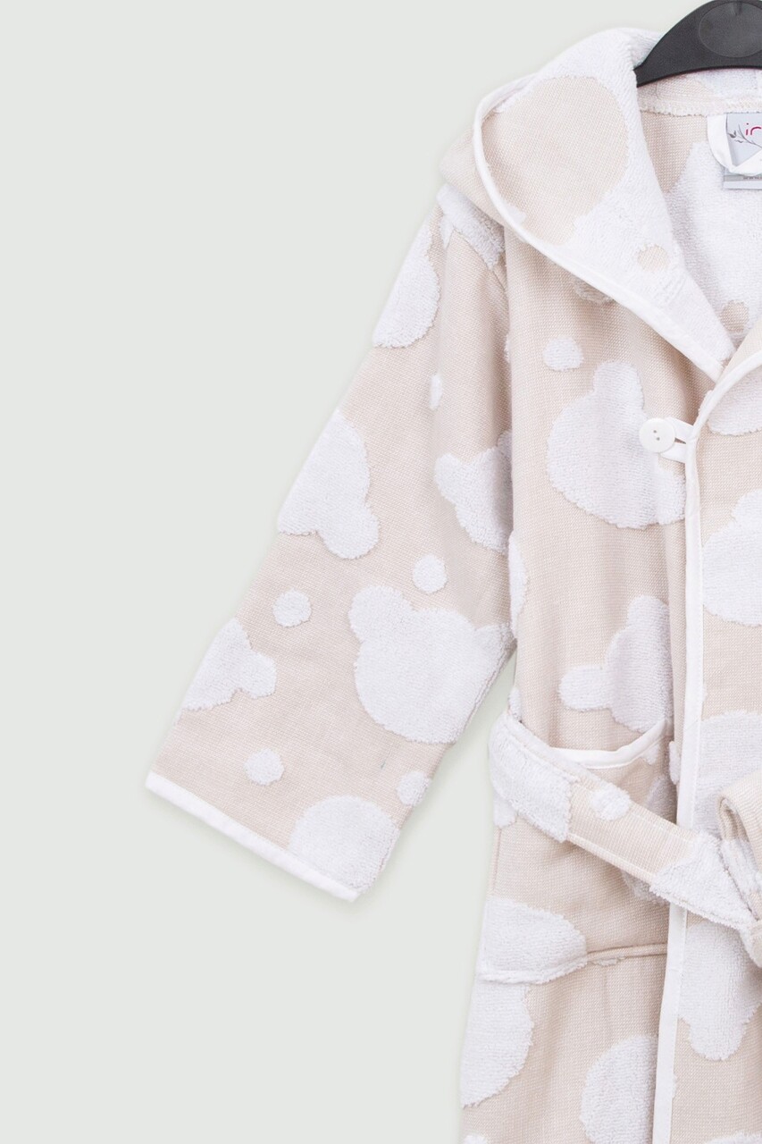 Halat de baie pentru copii, Irya Home, Bear, Bumbac, Bej/Alb