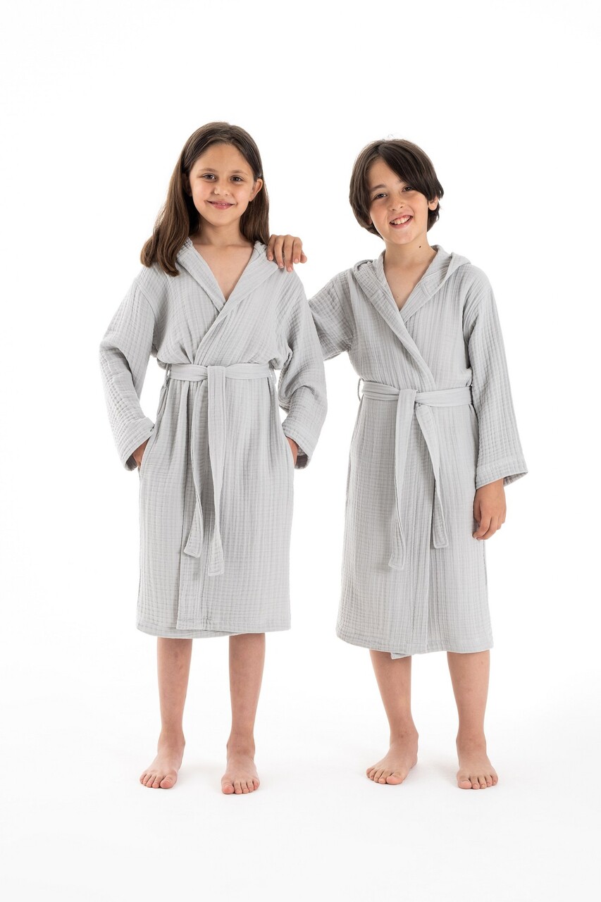 Halat de baie pentru copii, L'essentiel Maison, Muslin, Gri