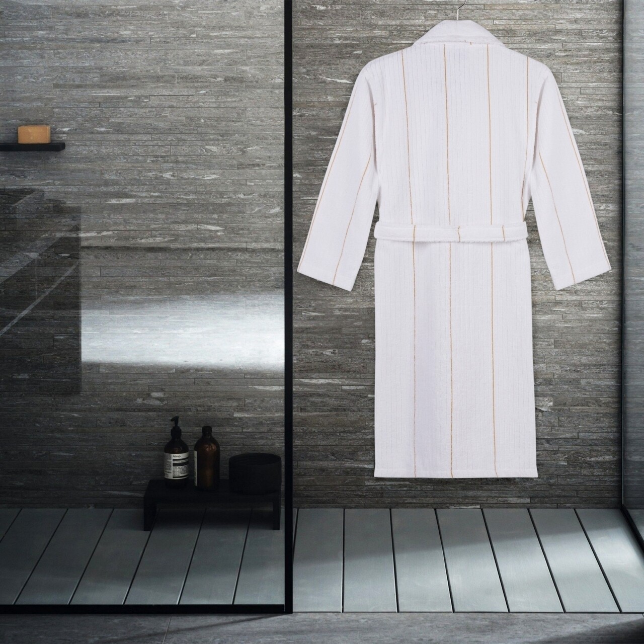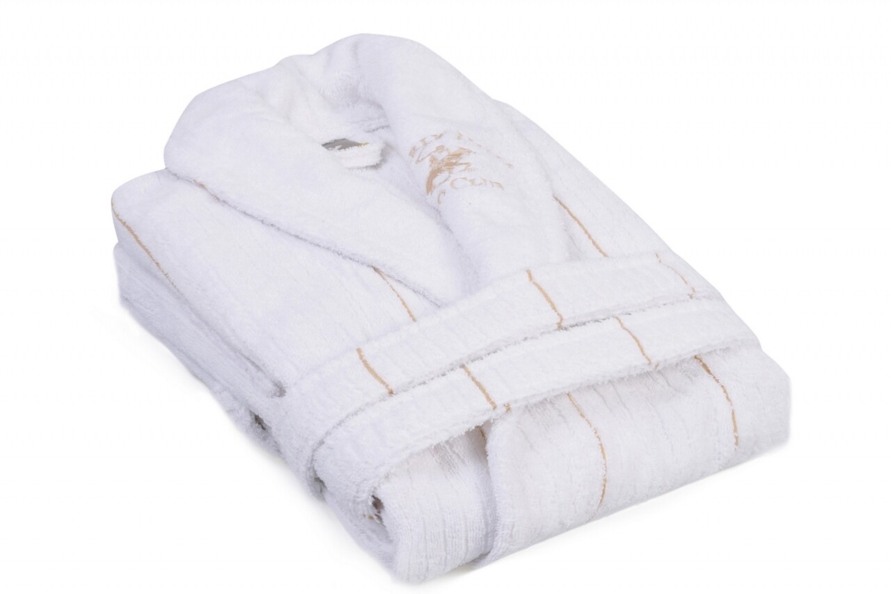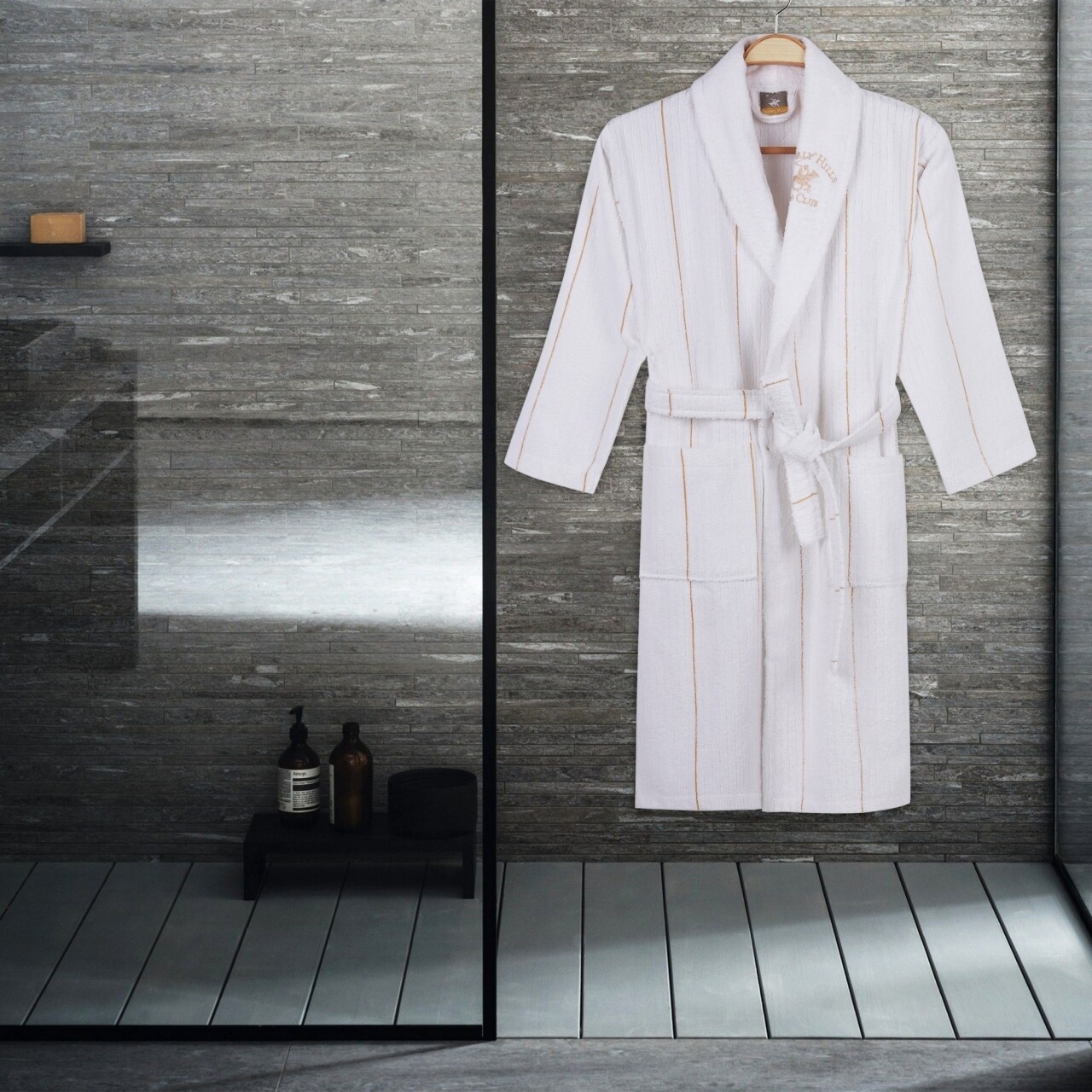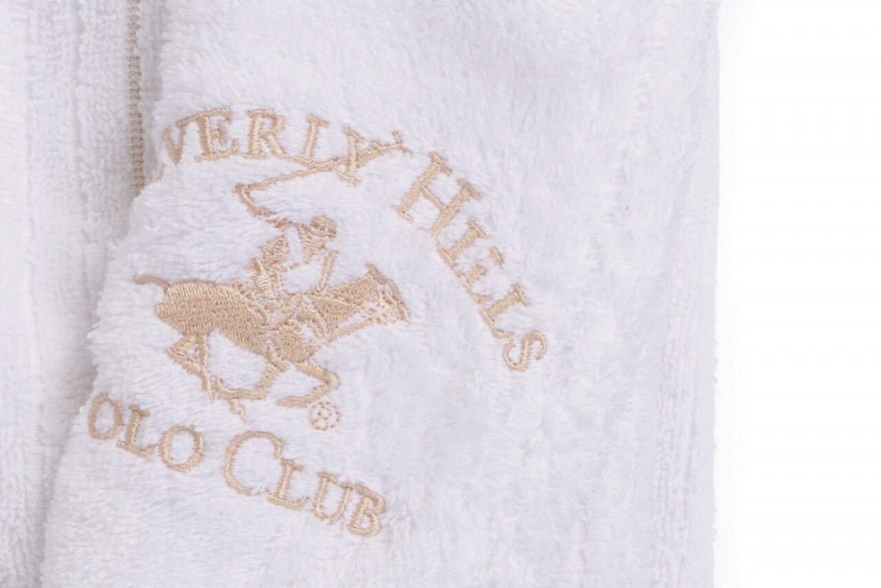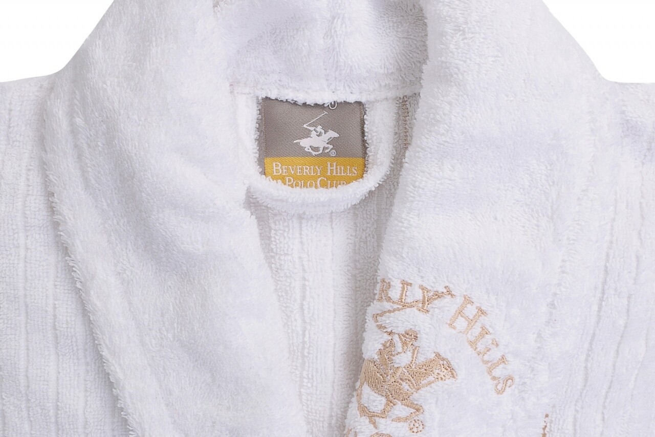 Halat de baie unisex, Beverly Hills Polo Club, 100% bumbac, L/XL, White/Beige