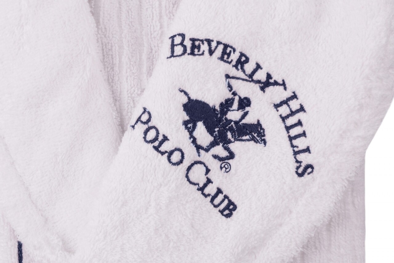 Halat de baie unisex, Beverly Hills Polo Club, 100% bumbac, L/XL, White/Dark Blue