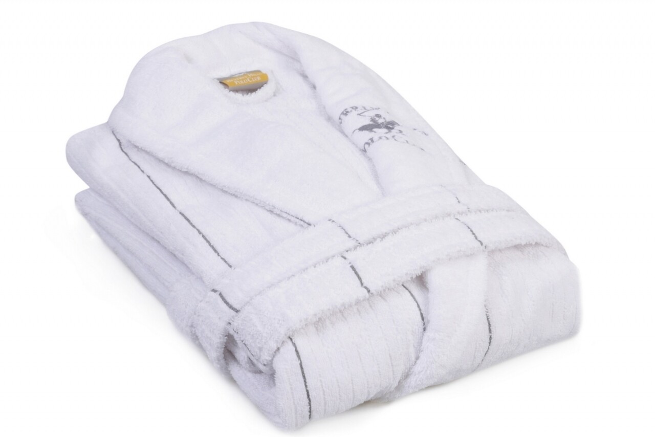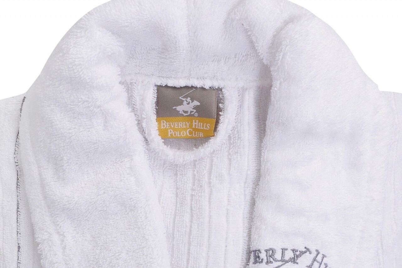 Halat de baie unisex, Beverly Hills Polo Club, 100% bumbac, L/XL, White/Grey