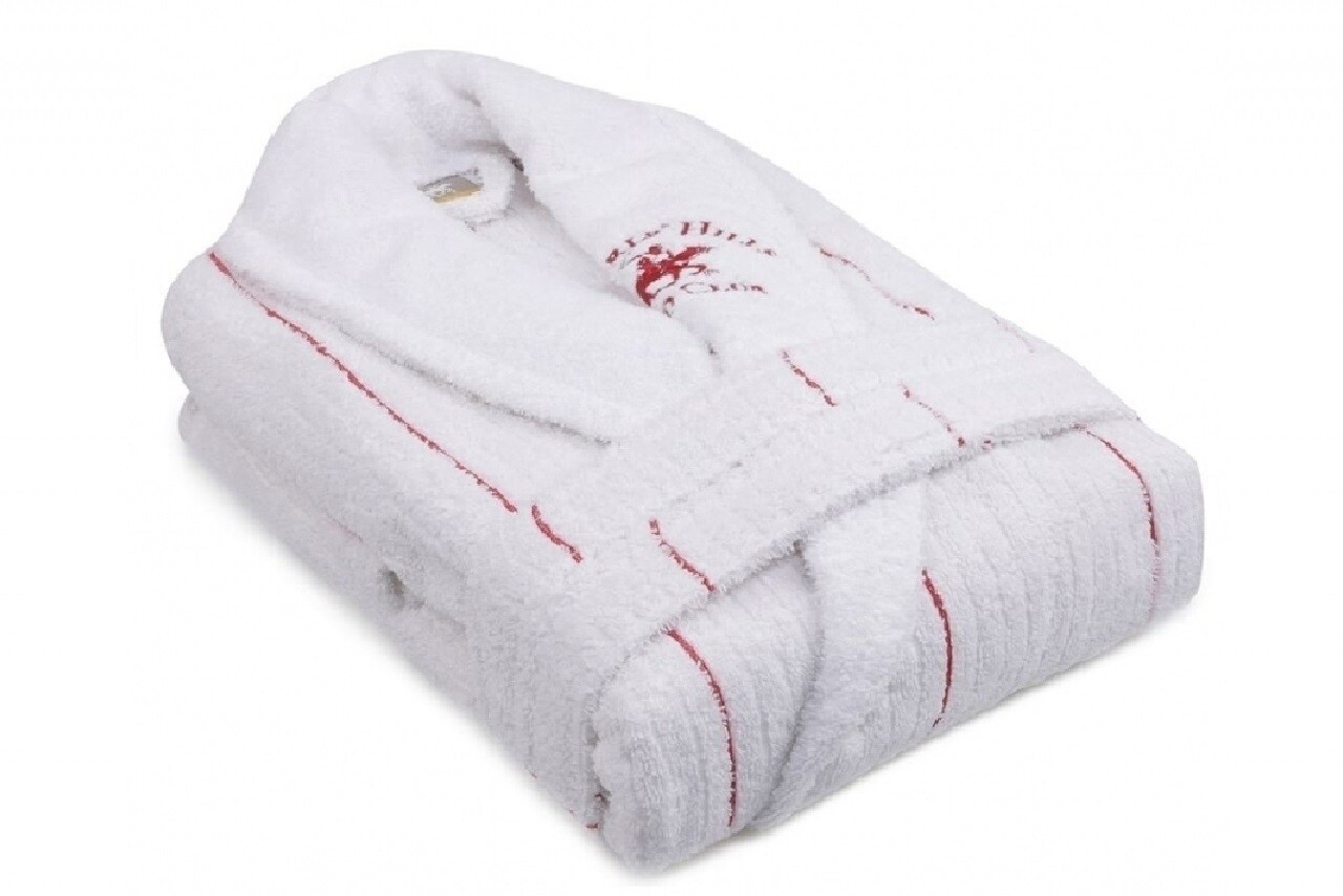 Halat de baie unisex, Beverly Hills Polo Club, 100% bumbac, L/XL, White/Red