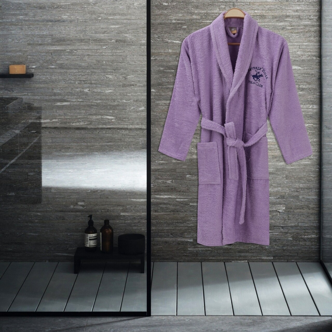 Halat de baie unisex, Beverly Hills Polo Club, 100% bumbac, M/L, lila