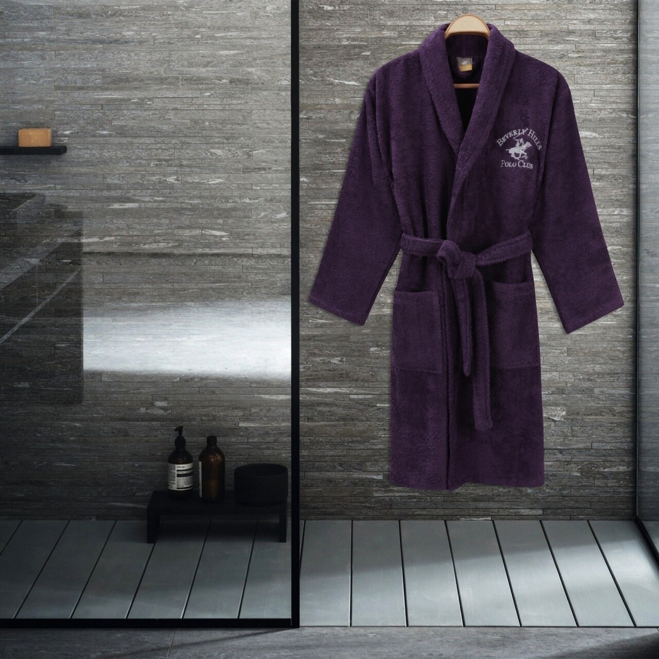 Halat de baie unisex, Beverly Hills Polo Club, 100% bumbac, M/L, Purple