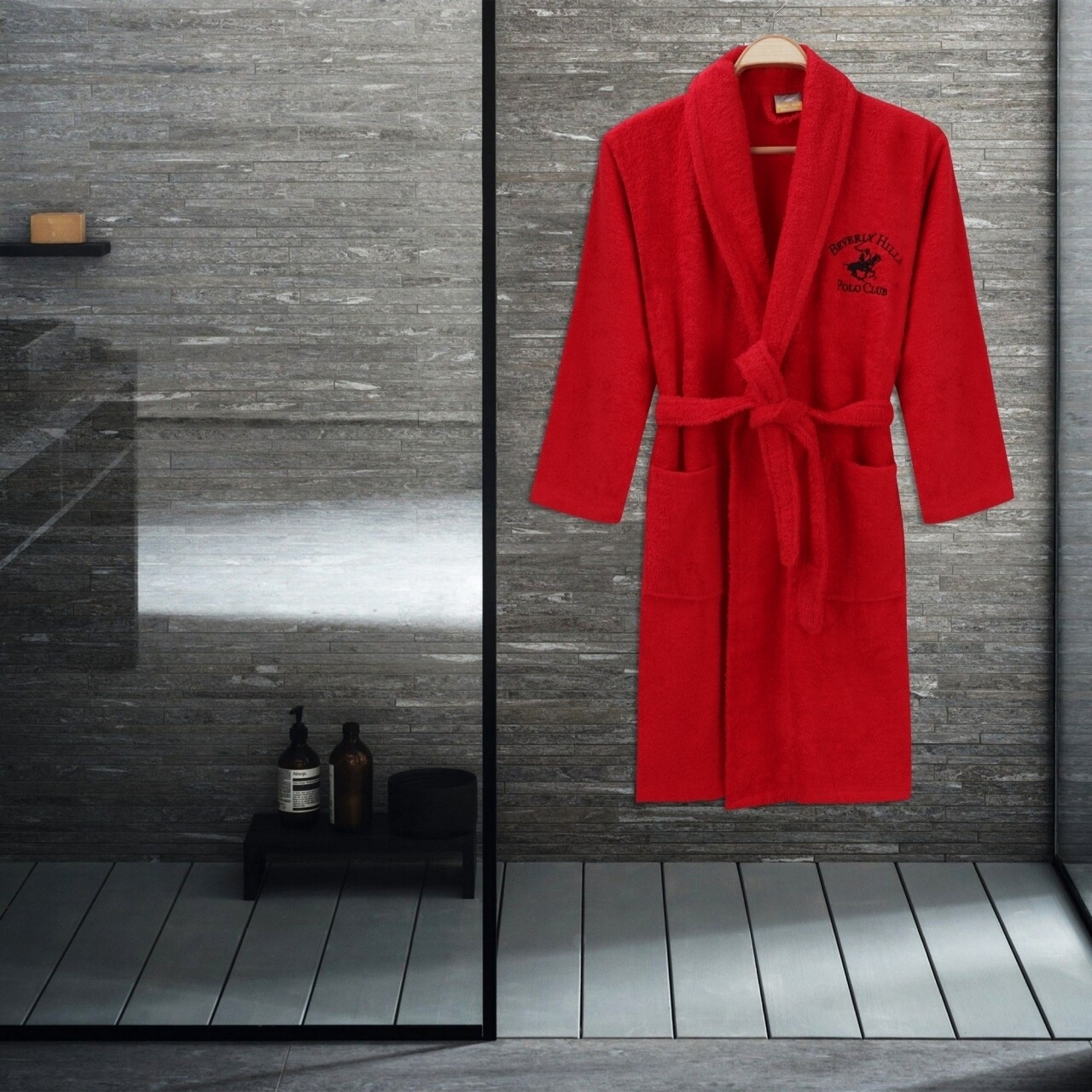 Halat de baie unisex, Beverly Hills Polo Club, 100% bumbac, S/M, Red