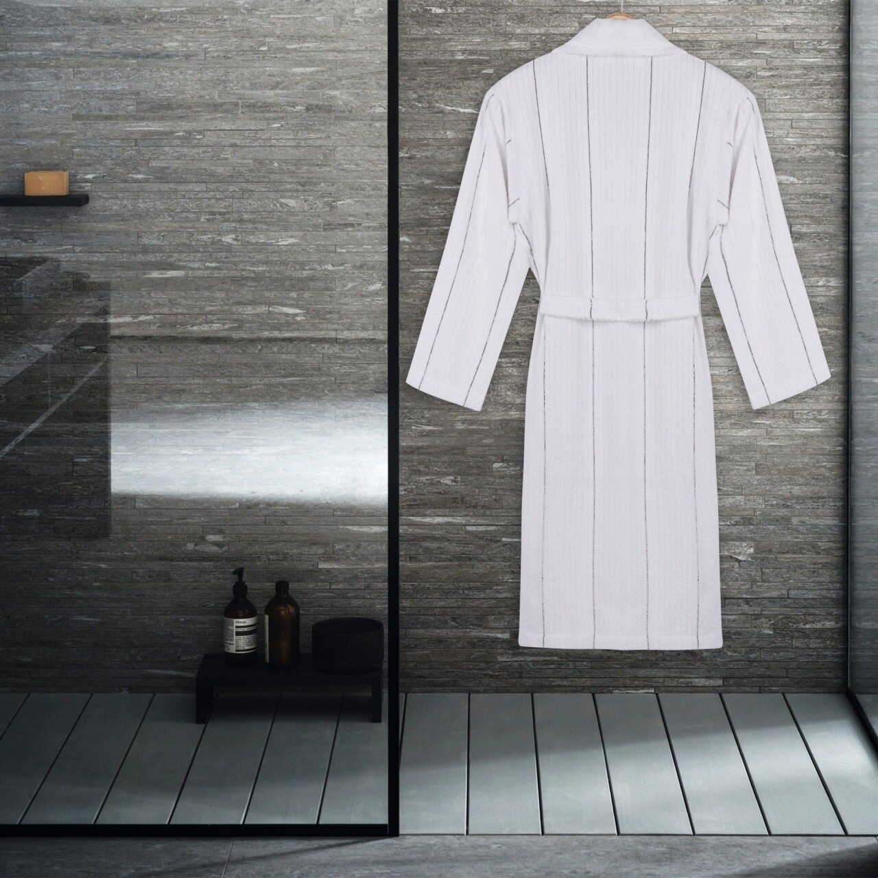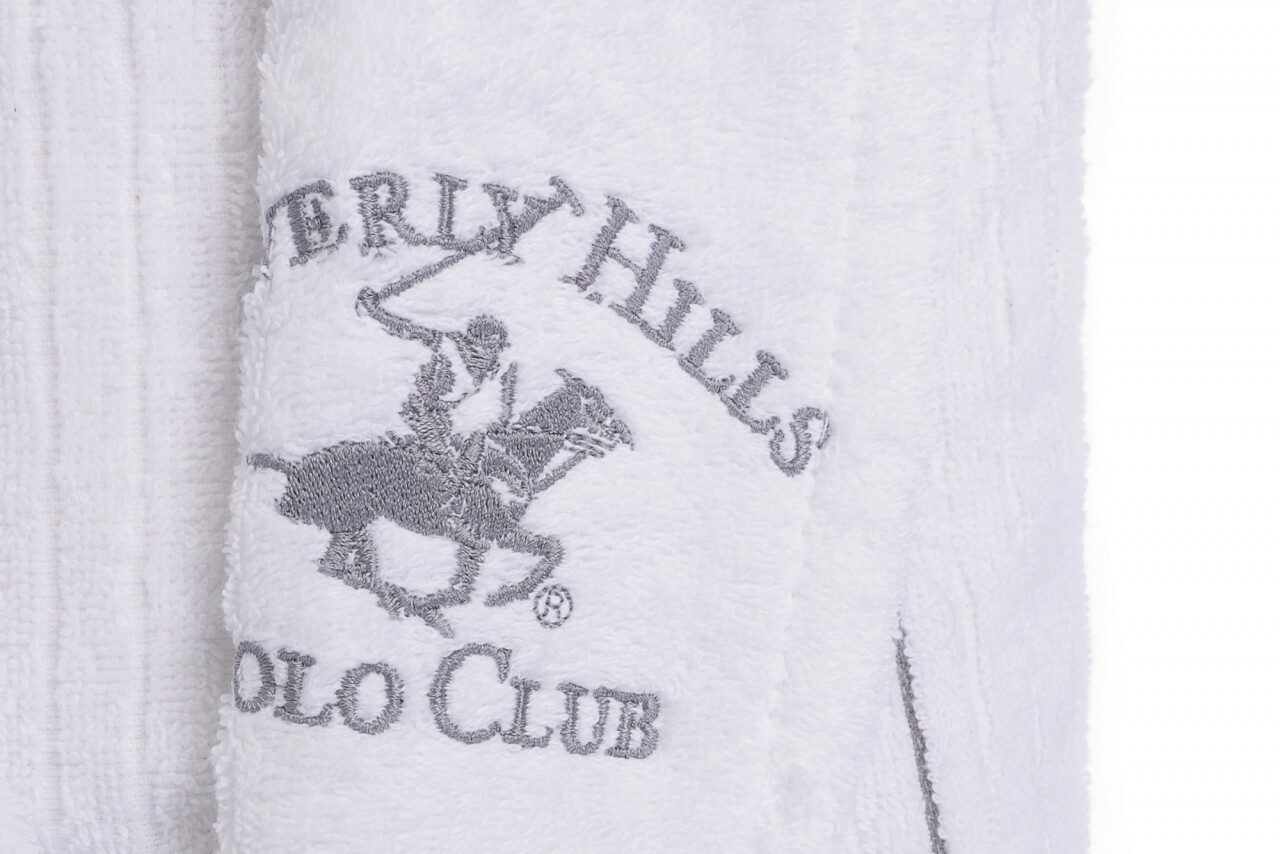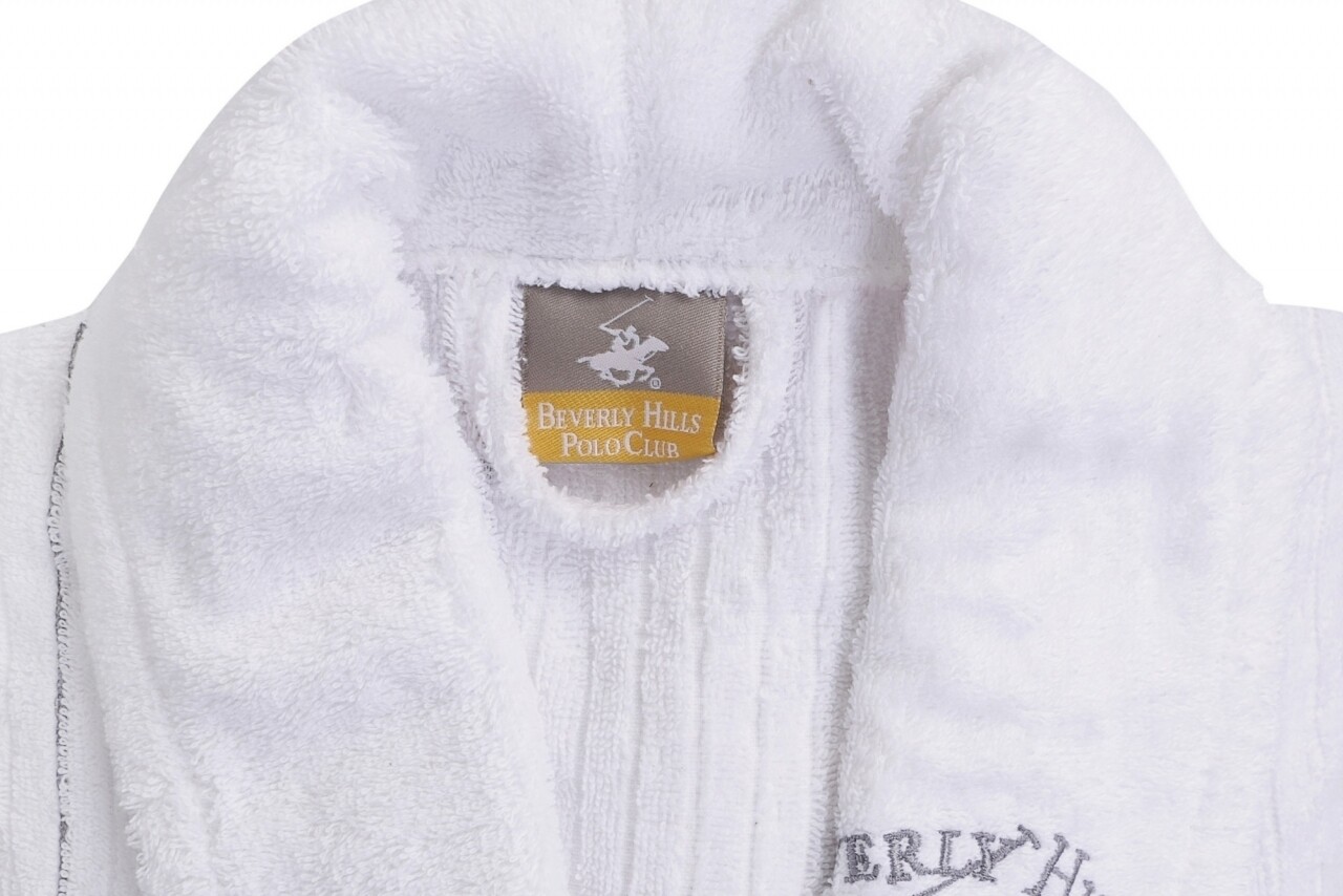 Halat de baie unisex, Beverly Hills Polo Club, 100% bumbac, S/M, White/Grey