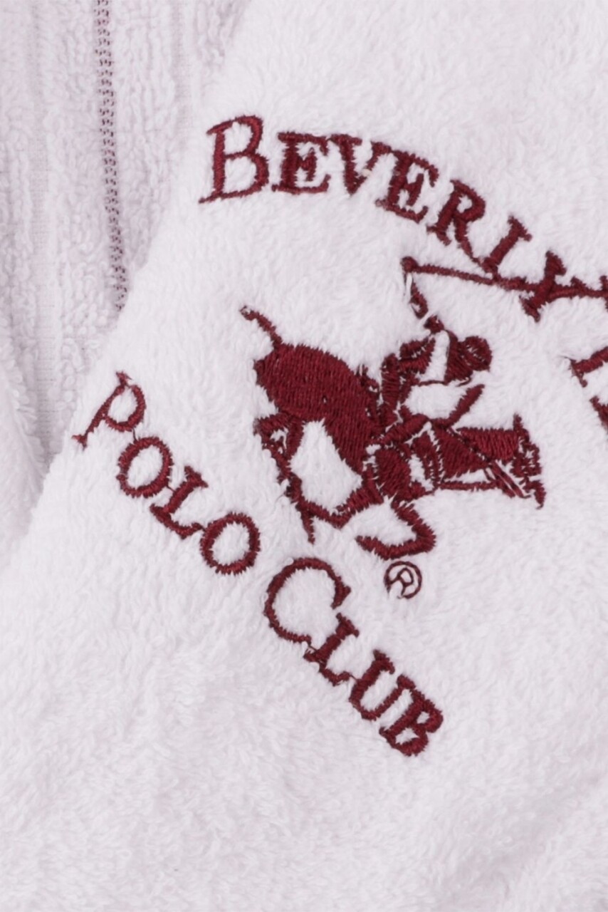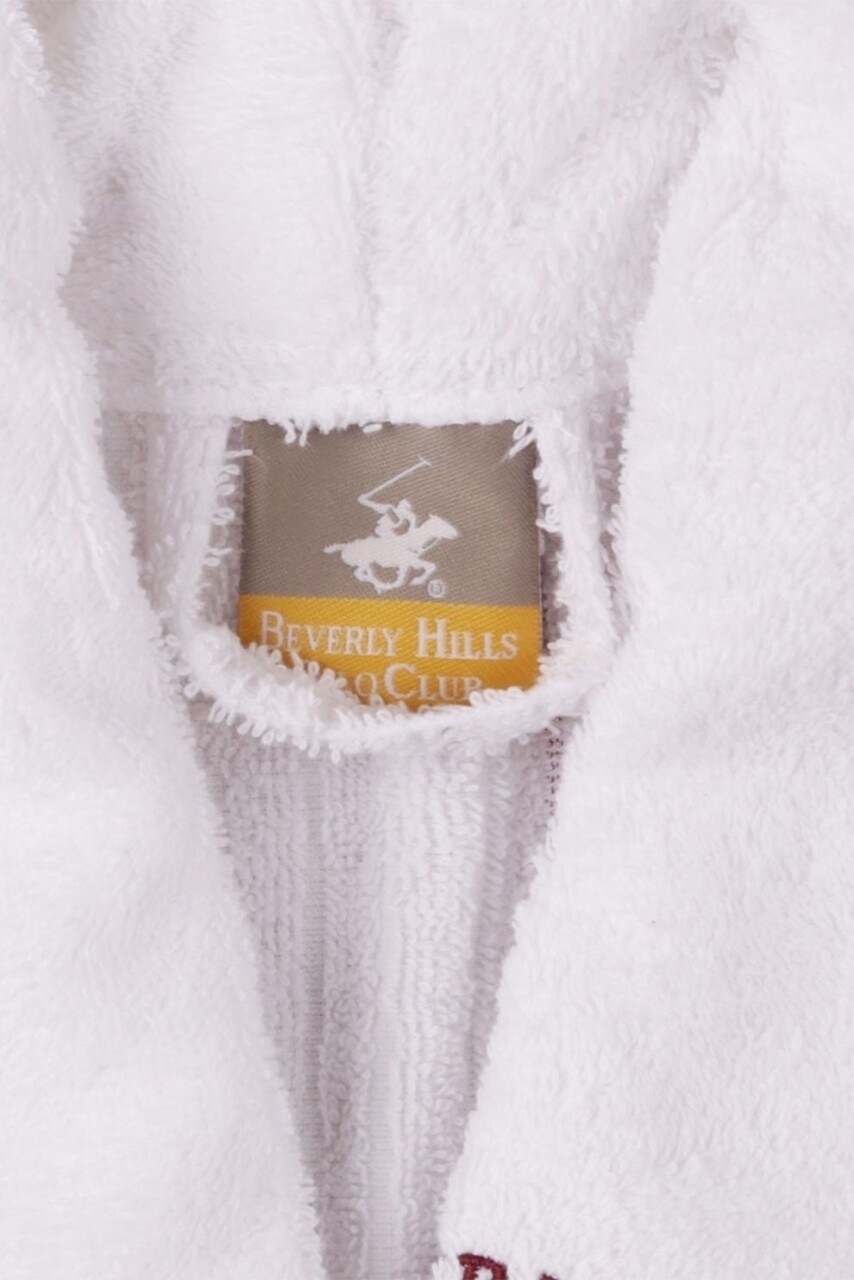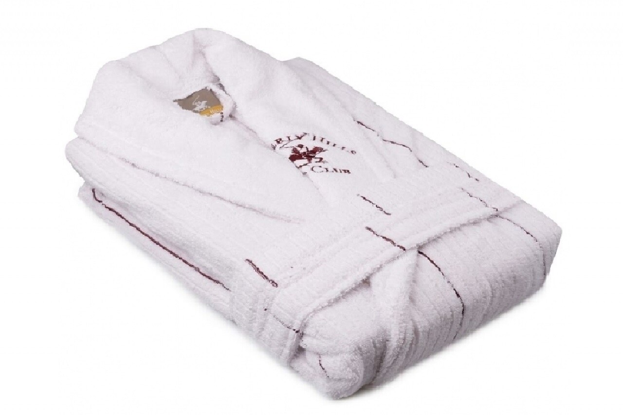 Halat de baie unisex, Beverly Hills Polo Club, 100% bumbac, S/M, White/Maroon