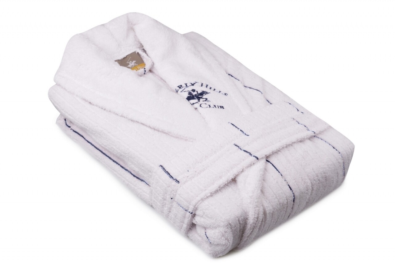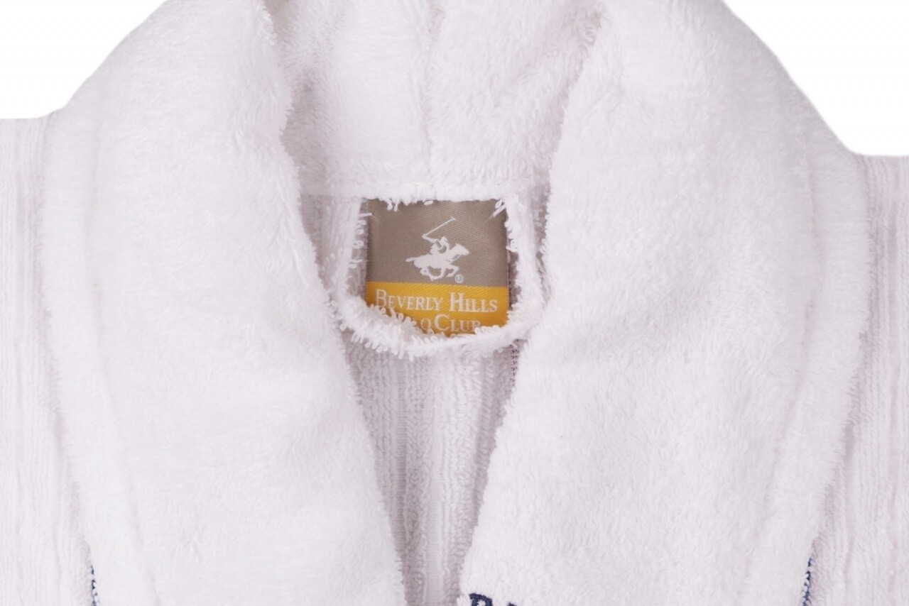 Halat de baie unisex, Beverly Hills Polo Club, 100% bumbac, XS/S, White/Dark Blue
