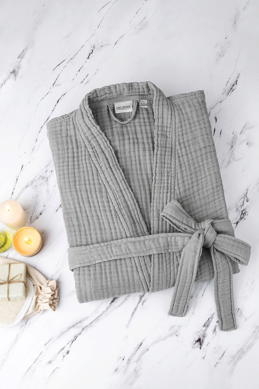 Halat de baie unisex, L'essentiel Maison, Kimono, Gri