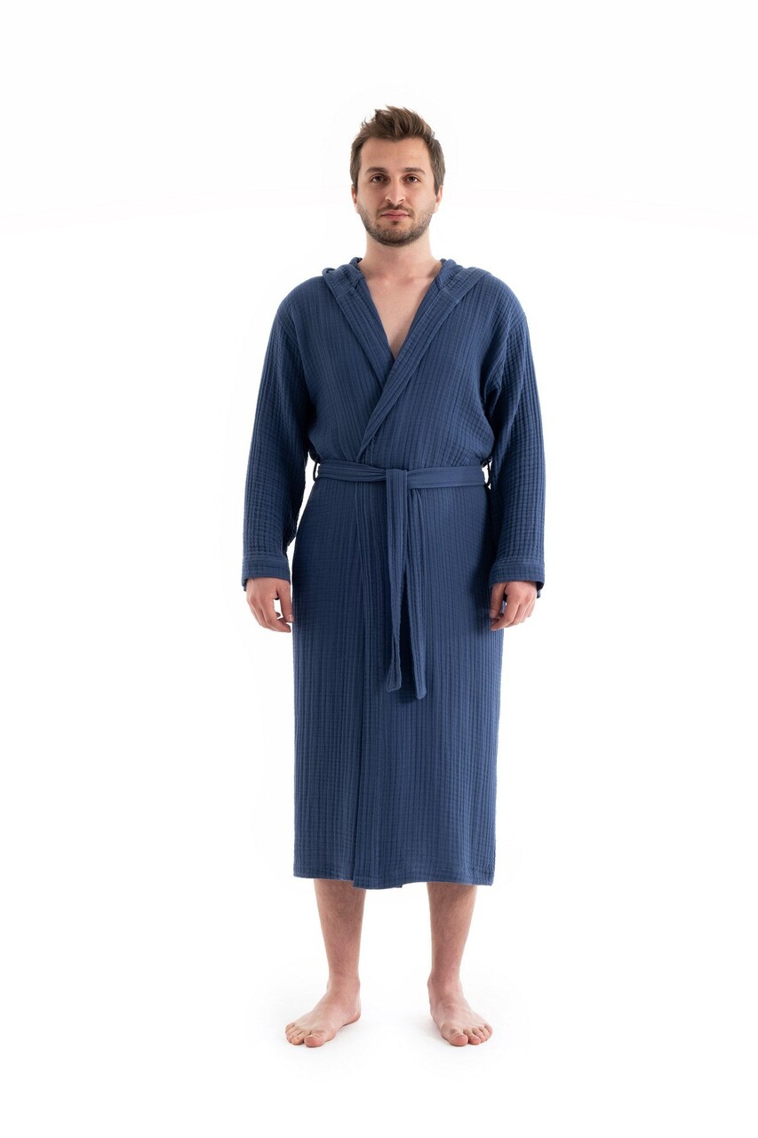 Halat de baie unisex, L'essentiel Maison, Muslin, Albastru navy