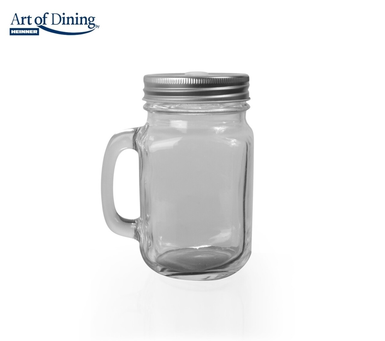Halba tip borcan este perfecta pentru a savura o bautura racoritoare. Capacul este perforat pentru a putea fi introdus paiul.