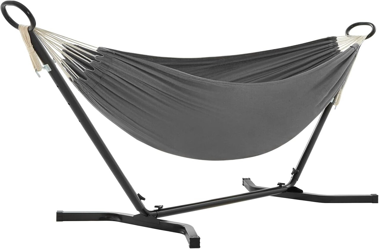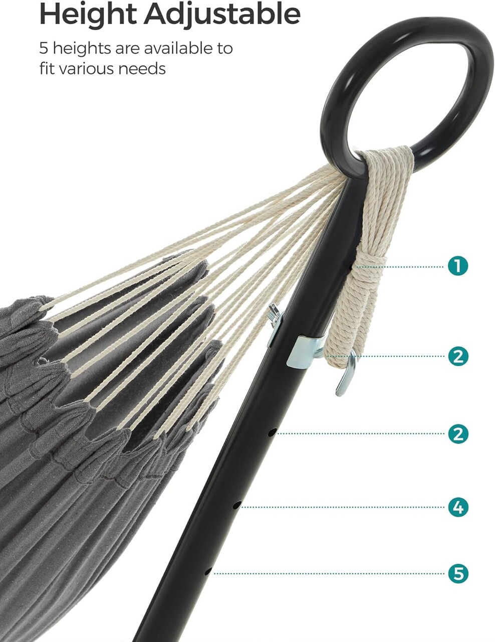 Hamac cu suport, Songmics, 210x150 cm, 5 inaltimi reglabile, max 240 kg, negru/gri