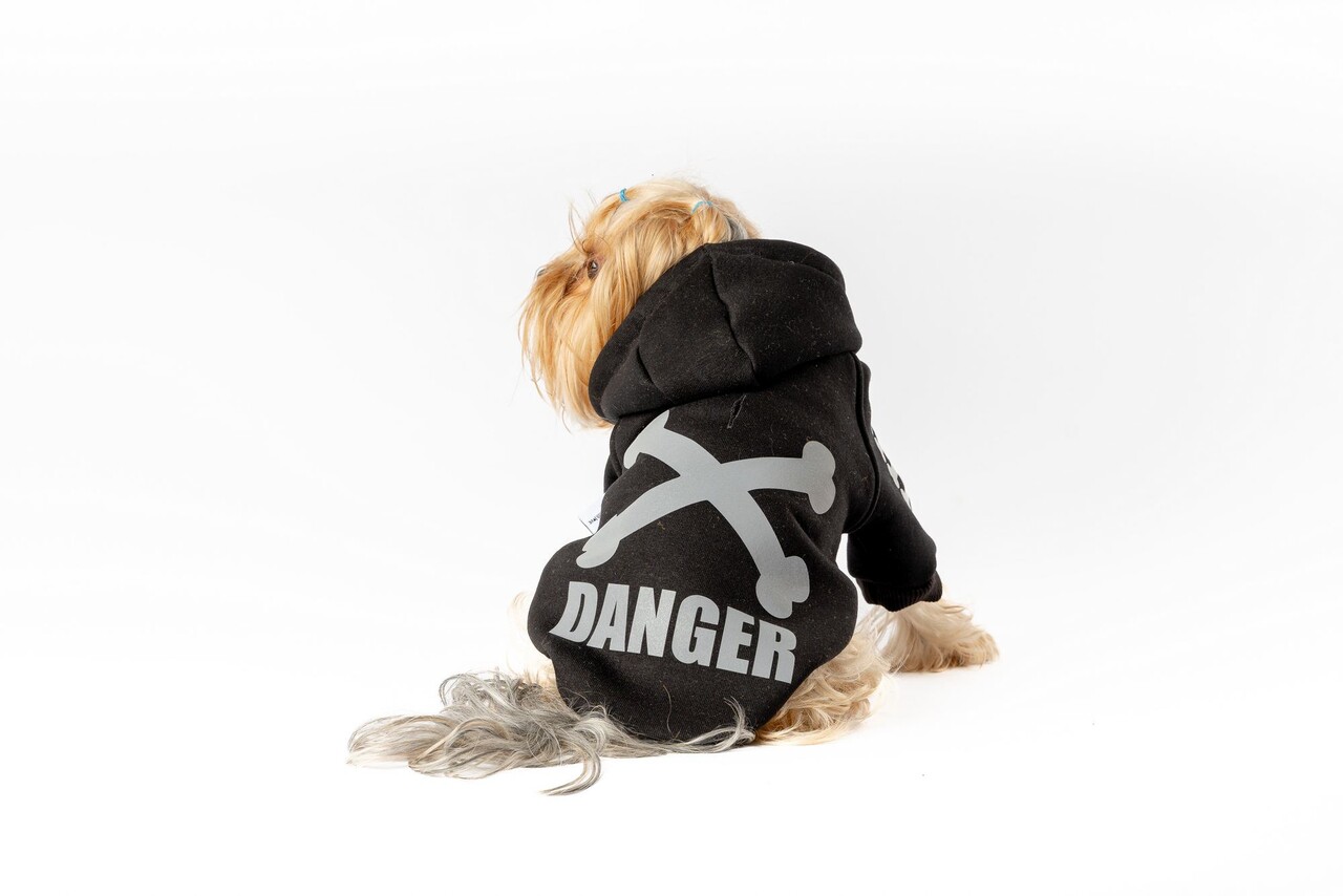 Hanorac pentru câini, Paws & Whiskers, Danger Hoodie, Negru
