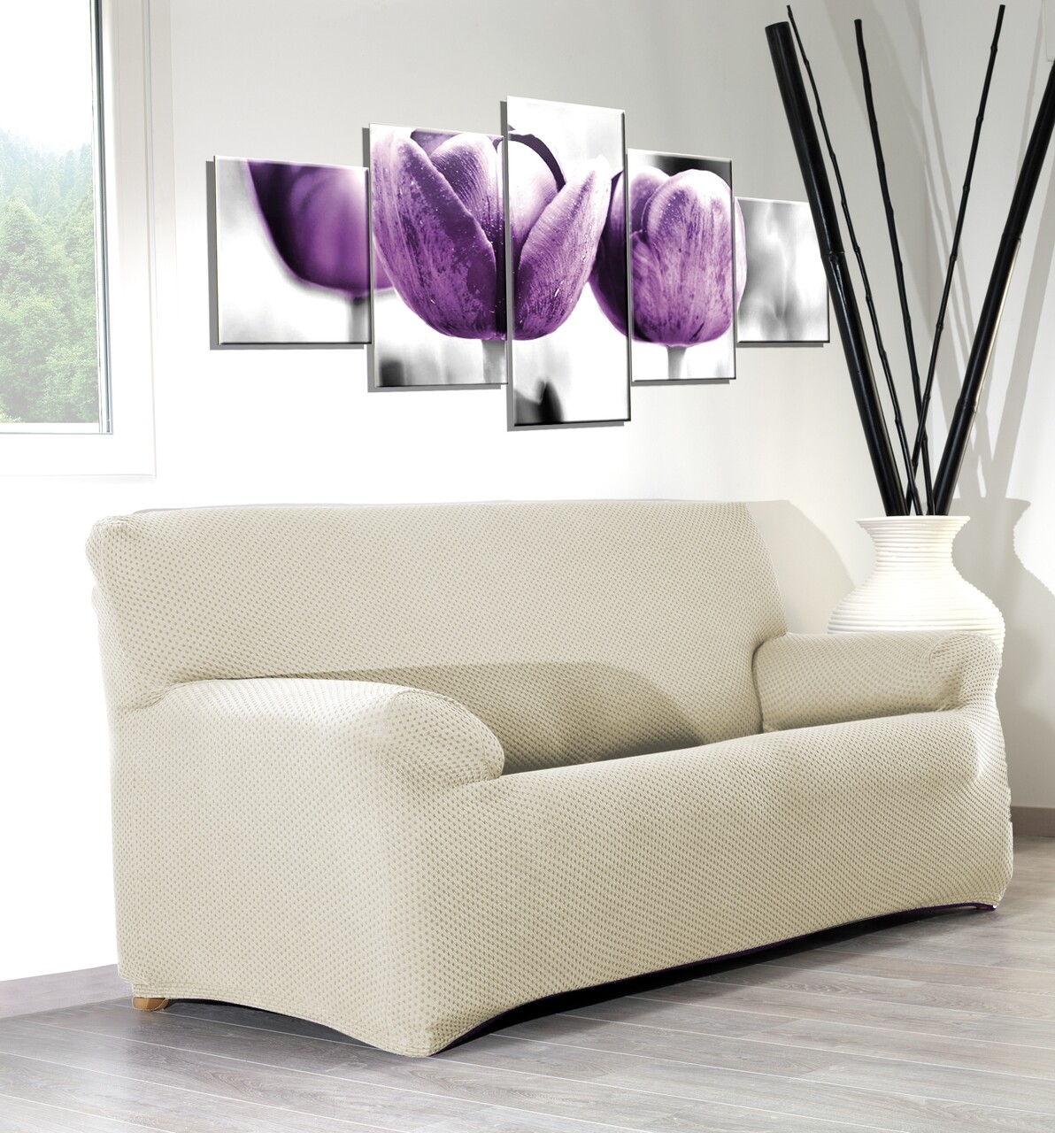 Husa canapea elastica bi-stretch, Sucre, 3 locuri, natural C/0