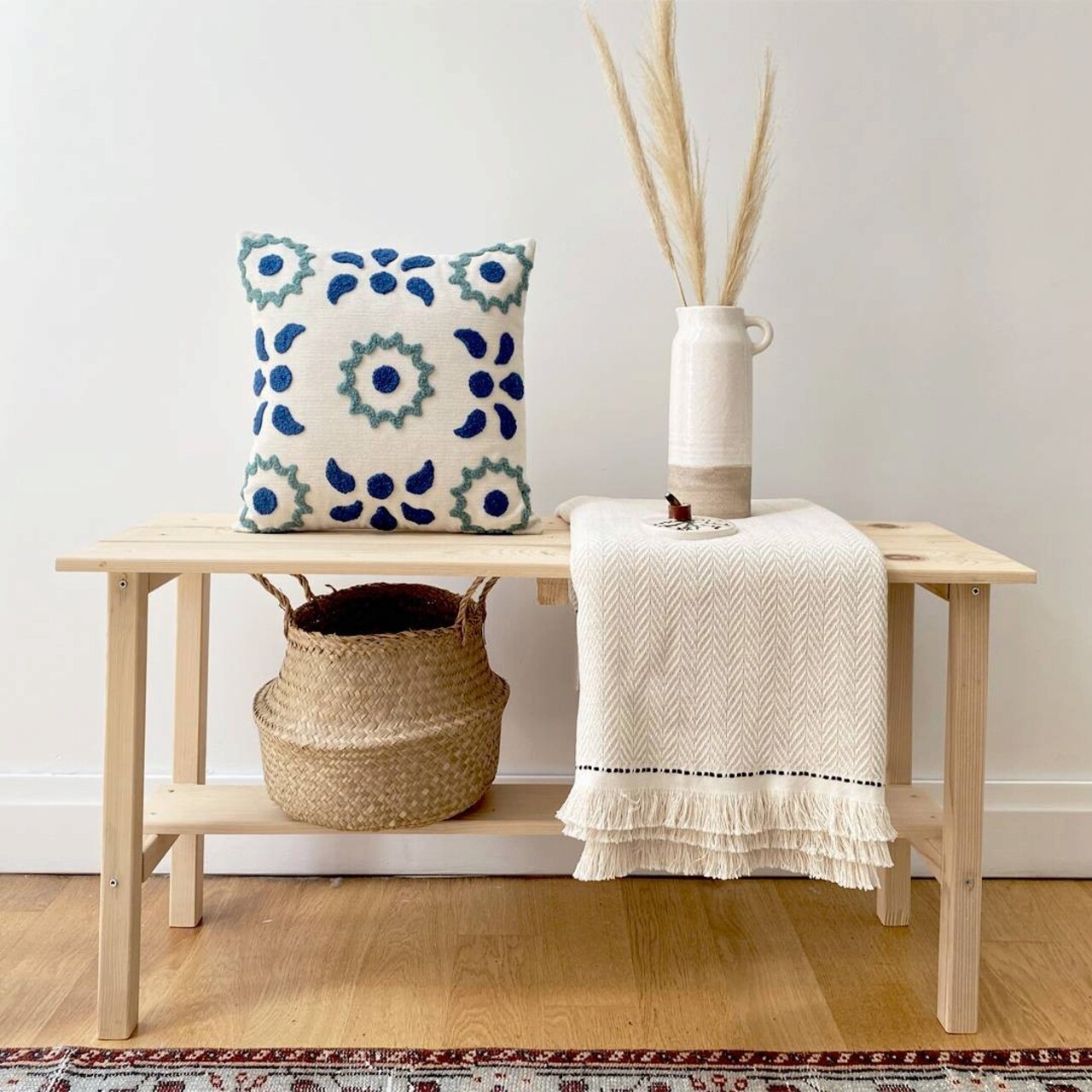 Husa de perna, Margrit Punch Pillow Cover, 43x43 cm, Material: 20% in, 80% poliester, Bleumarin / Gri