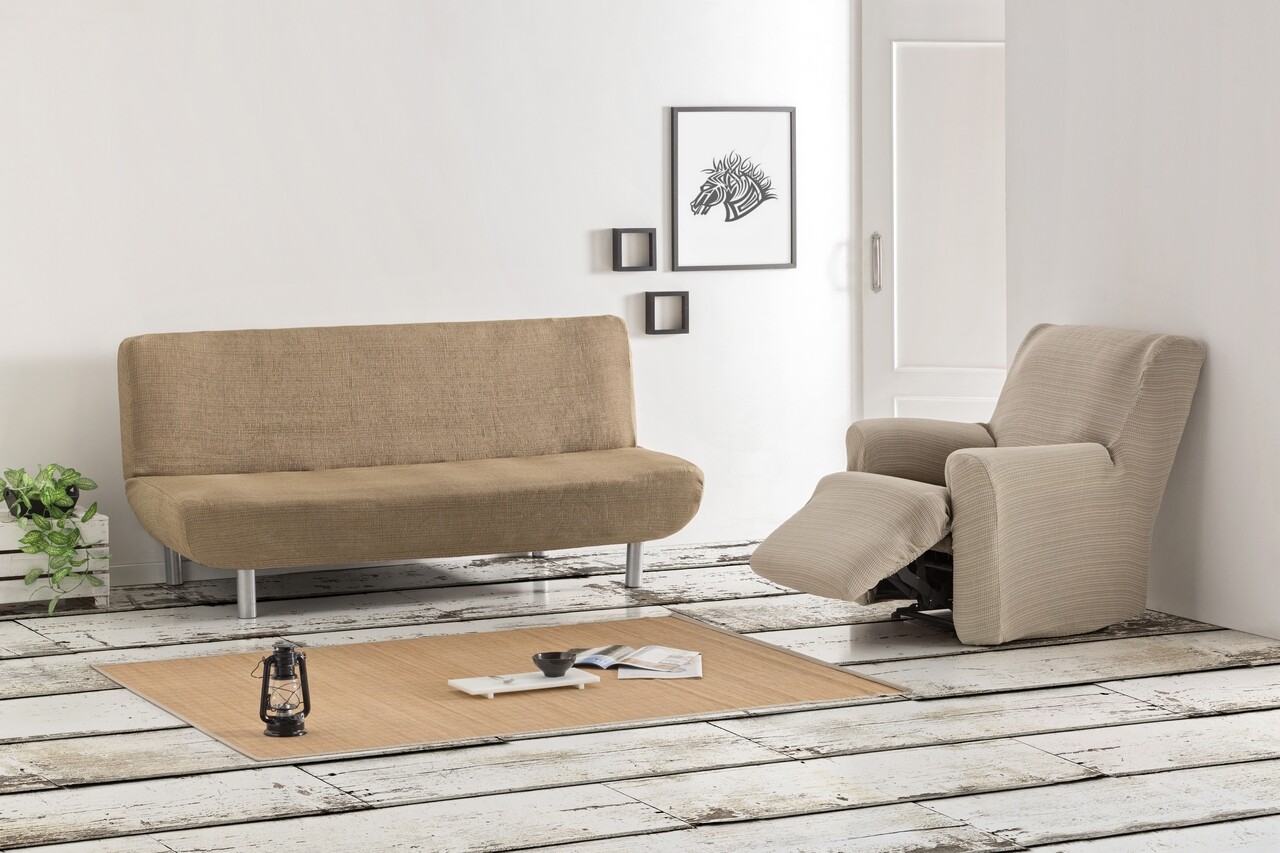 Husa fotoliu cu recliner elastica bi-stretch, Aquiles, natural C/0