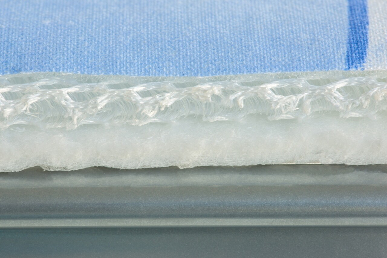 Husa are un strat de spuma de 2 mm ce pastreaza suprafata uscata si impiedica stropirea cu apa a podelei si stratul superior, din bumbac 100%, pentru o durabilitate sporita si o alunecare lina a fierului de calcat.