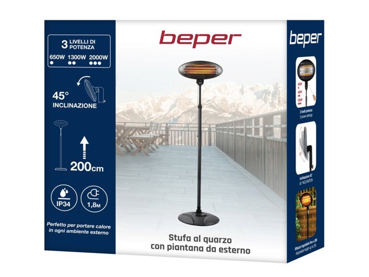 Incalzitor pentru terasa Beper, 2000 W, 50x50x178.5-211 cm, ABS/metal, negru