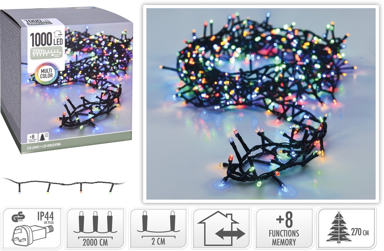 Instalatie de Craciun, 1000 LED-uri, 2000 cm, lumina multicolor