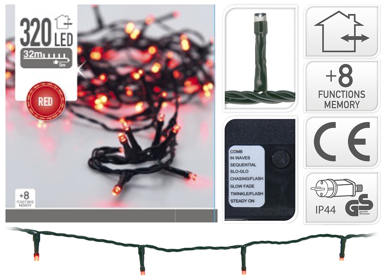 Instalatie de Craciun, 320 LED-uri, rosu