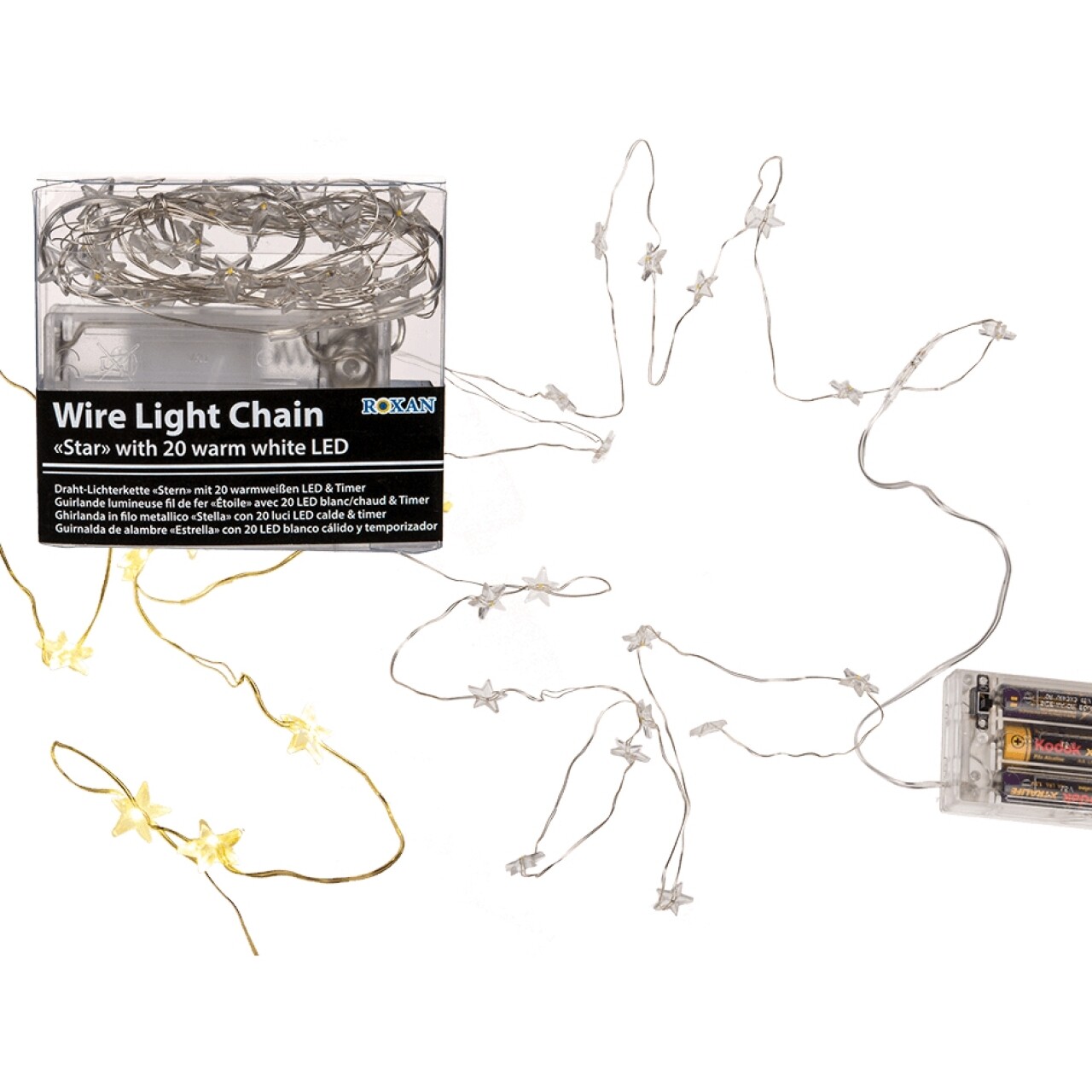 Instalația are 20 de LED-uri în formă de stea, o puteți agăța la fereastră sau o puteți așeza în pomul de Crăciun. Lumina ei fermecătoare și caldă se va răspăndi în jur.