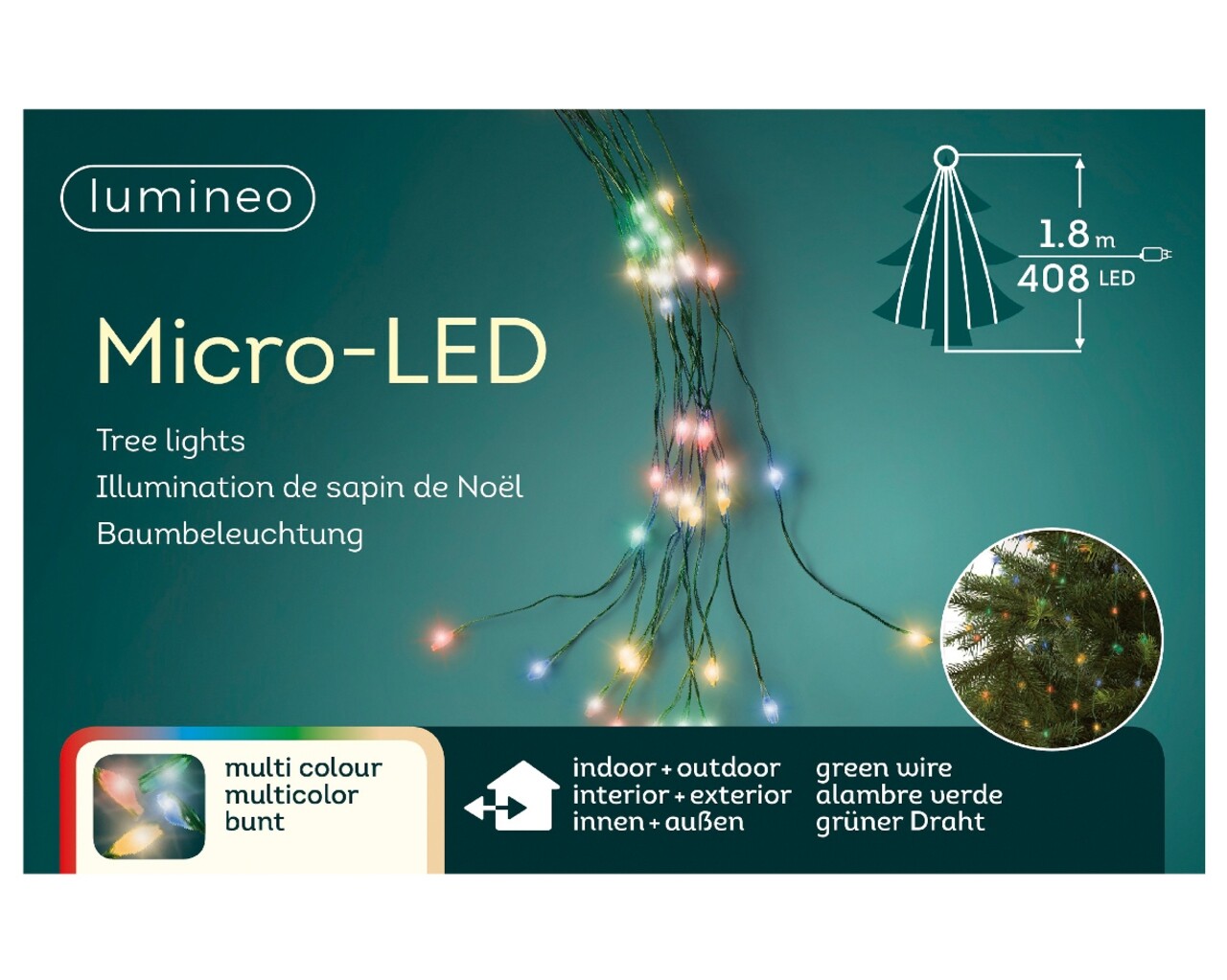 Instalatie pentru pom, Lumineo, 180 cm, 408 micro LED-uri, multicolor